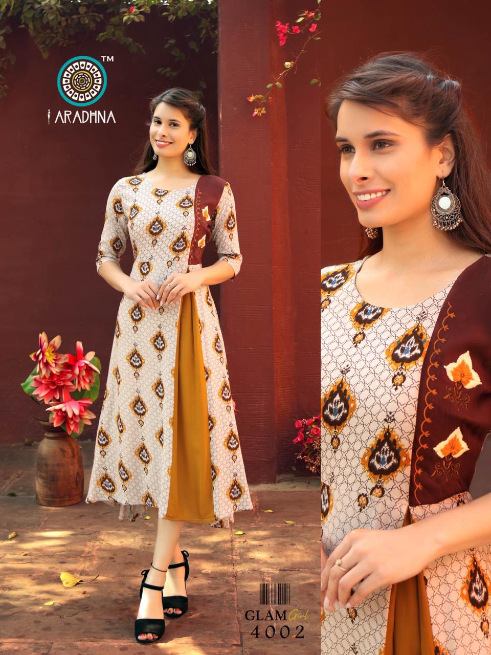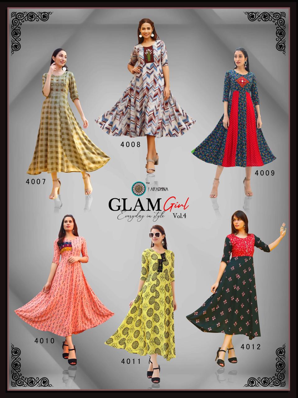 | NAME | Aradhna Glam Girl Vol 4 Beautiful Rayon Embroidered & Handwork Kurti Catalog at Wholesale rate |