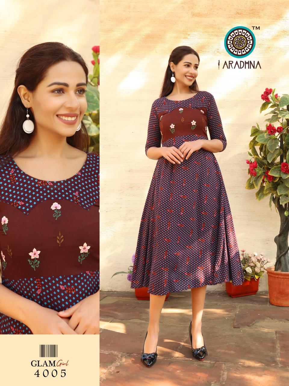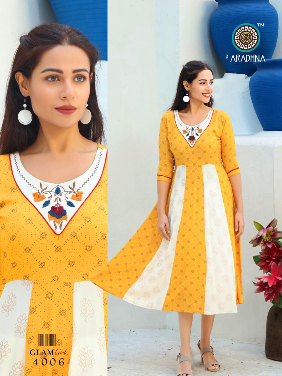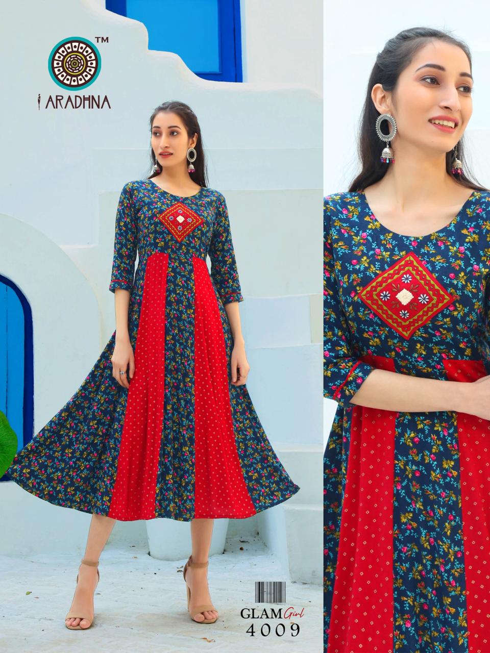 Aradhna Glam Girl Vol 4 Beautiful Rayon Embroidered & Handwork Kurti Catalog at Wholesale rate
