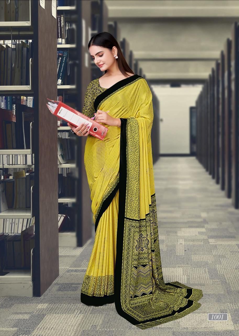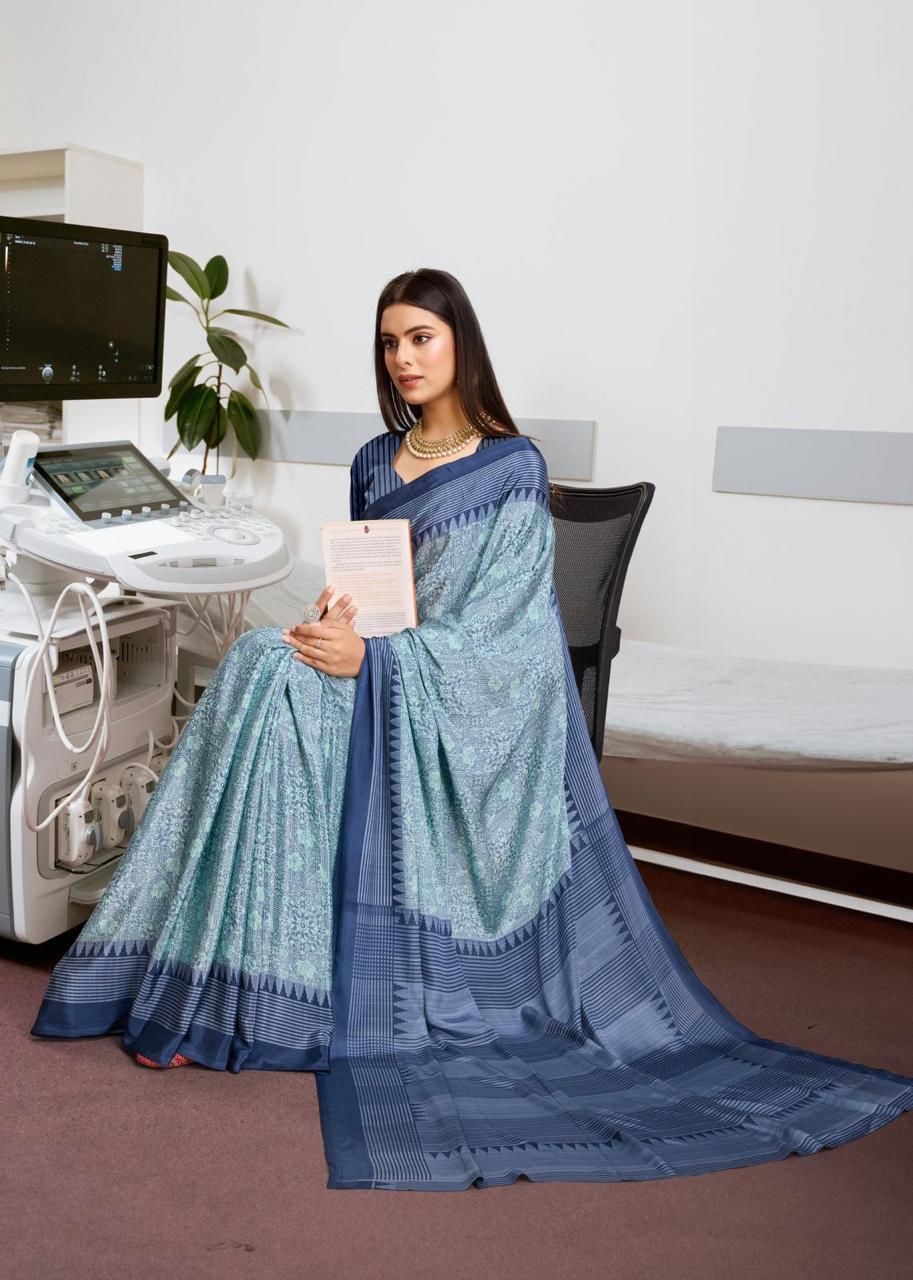 Beautiful Italian crepe silk Printed Uniform Design Saree