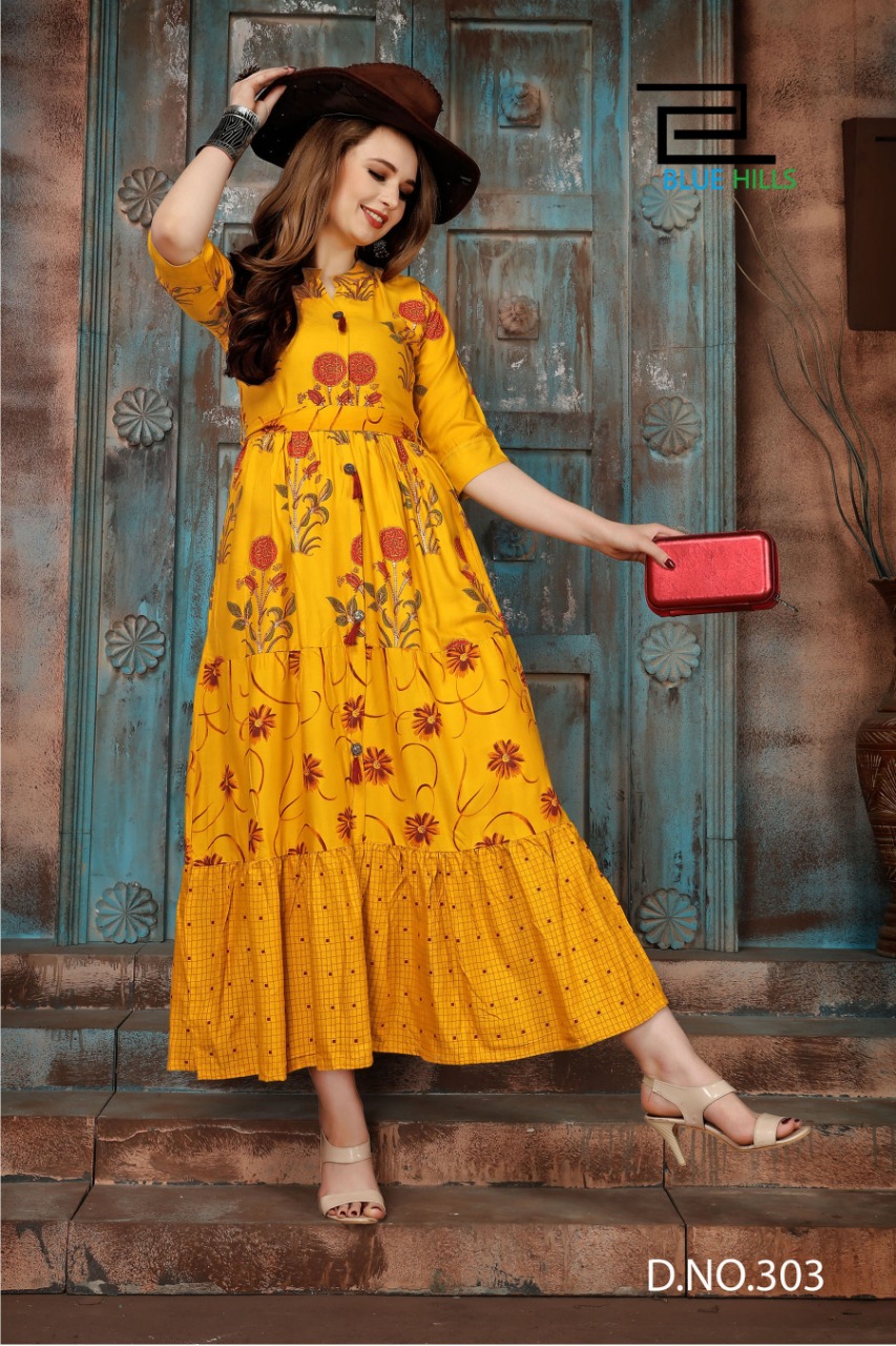 Blue Hills Bournville Vol - 2 Stylish Heavy Rayon with Foil Printed Kurti Catalog at Wholesale rate