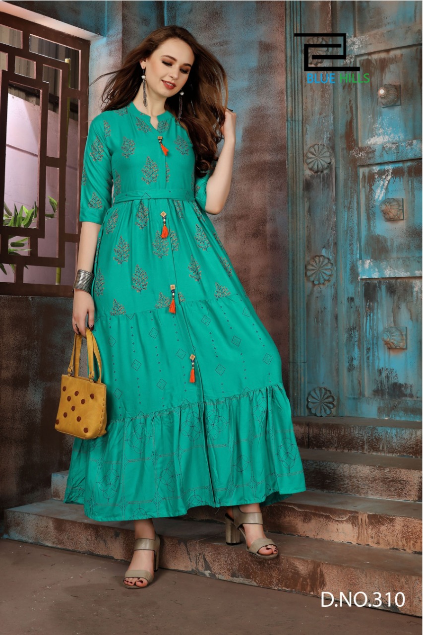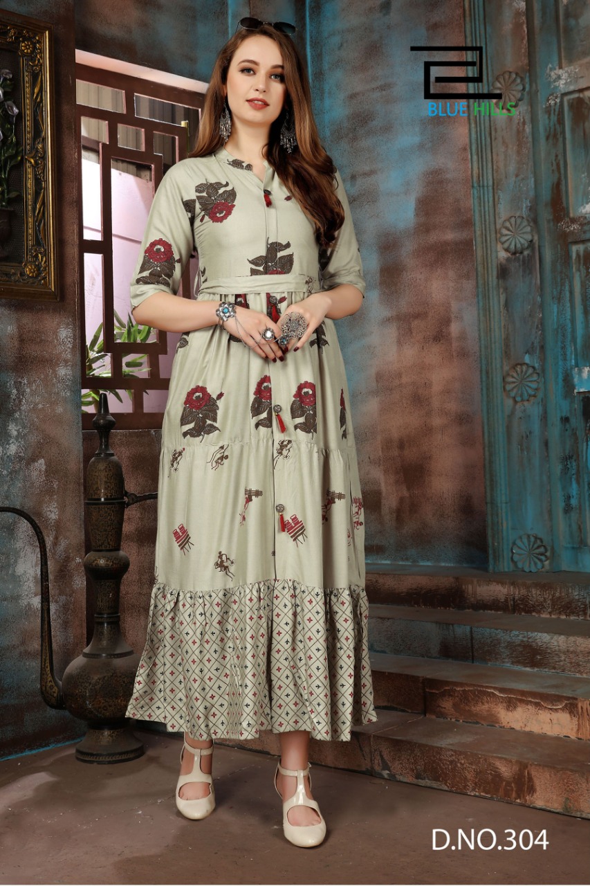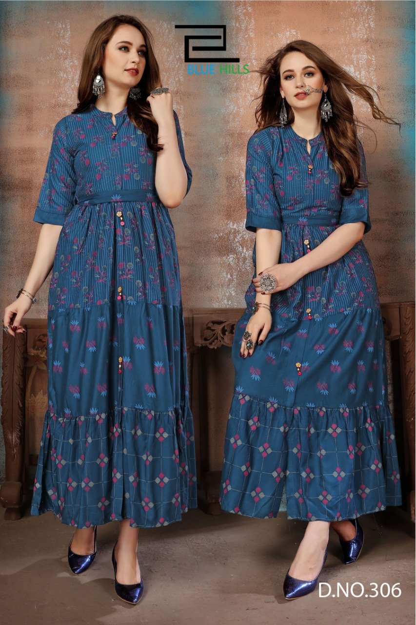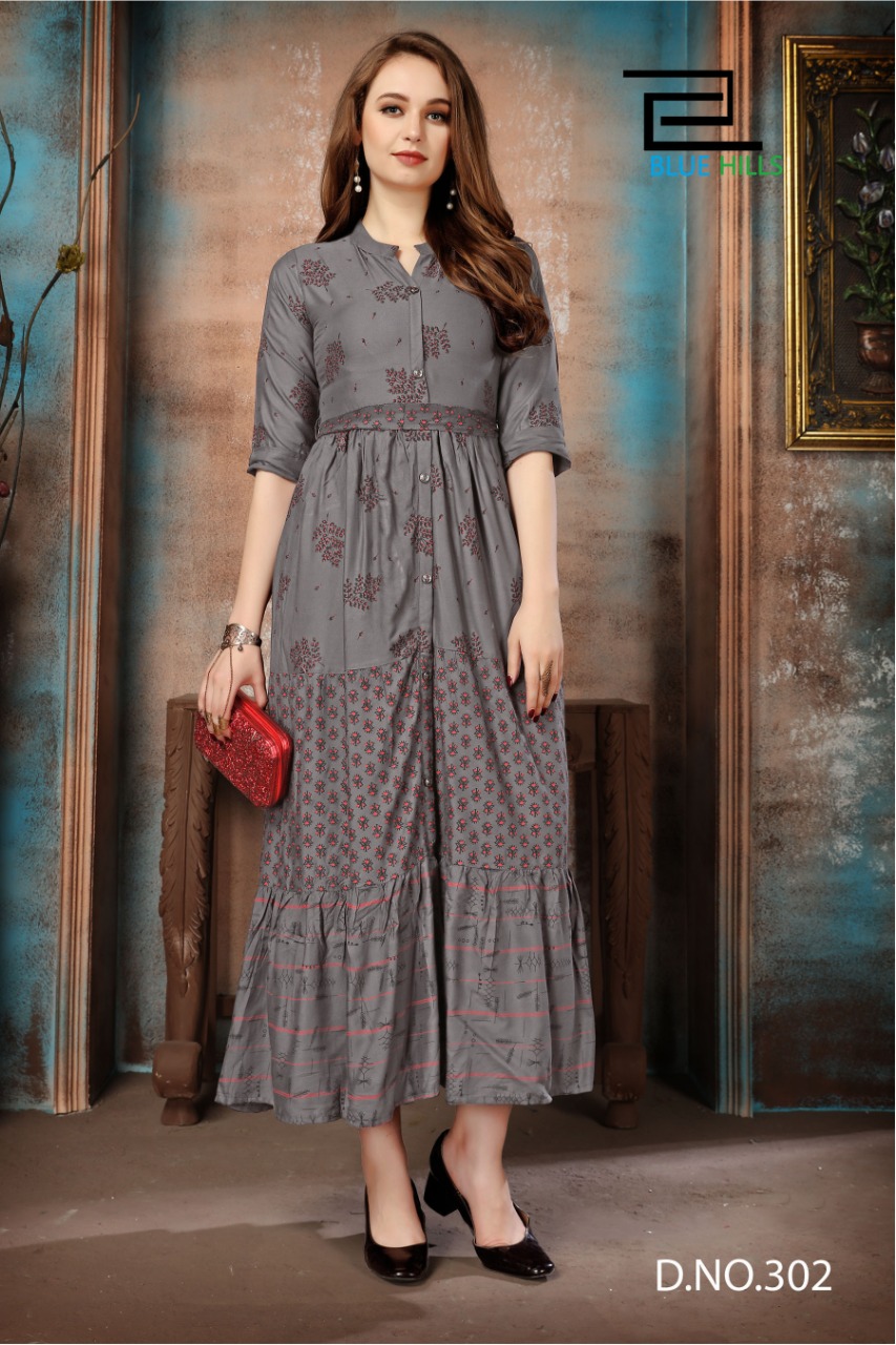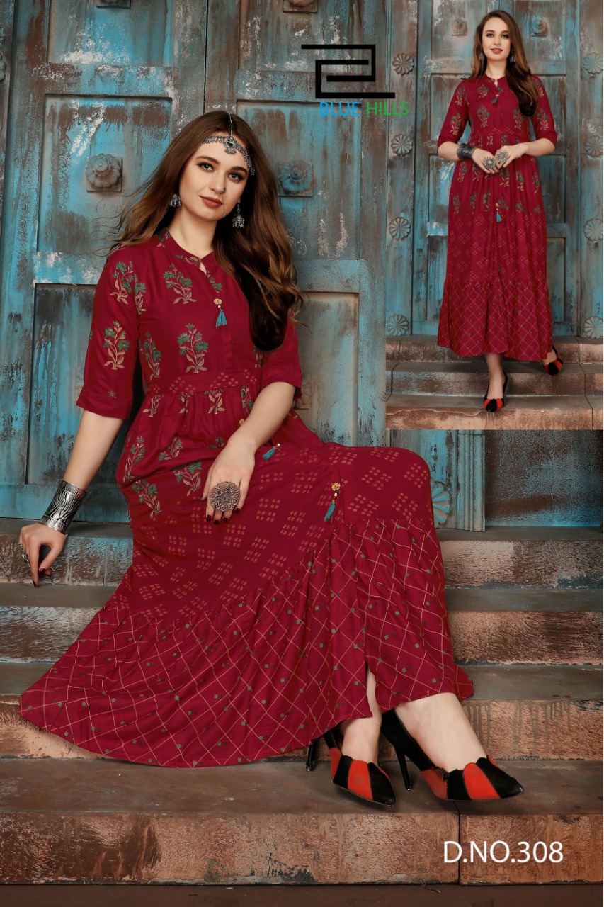 blue hills bournville vol - 2 stylish heavy rayon with foil printed kurti catalog at wholesale rate