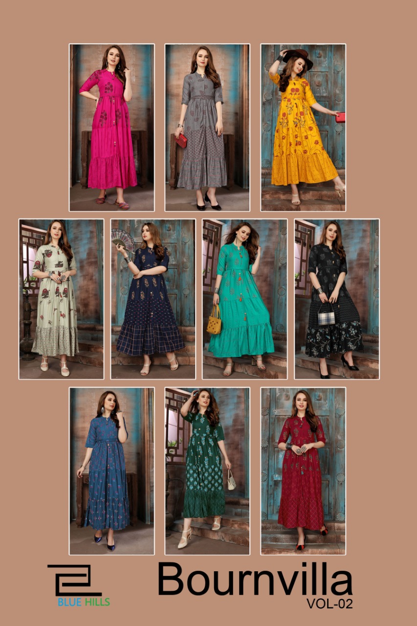 | NAME | Blue Hills Bournville Vol - 2 Stylish Heavy Rayon with Foil Printed Kurti Catalog at Wholesale rate |