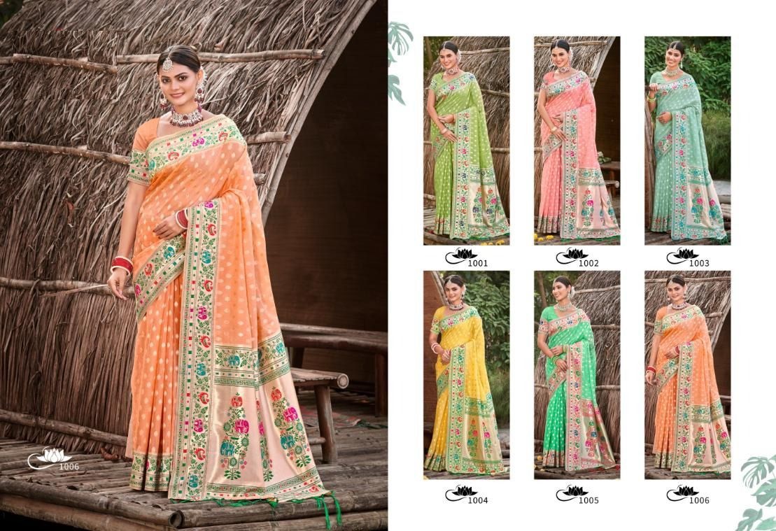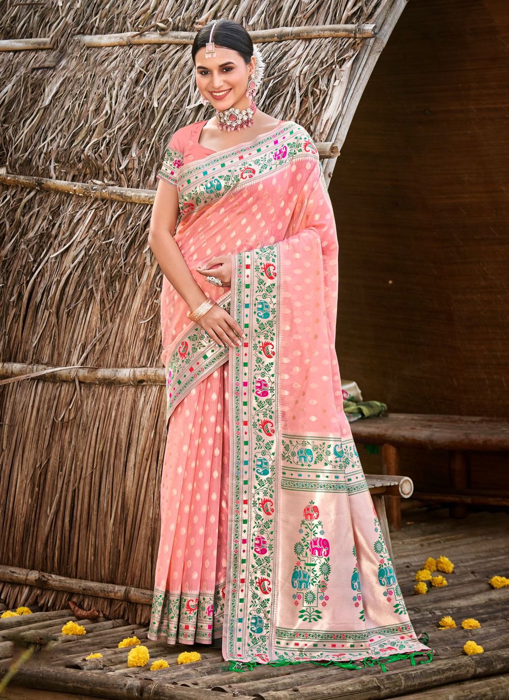 bollywood beautiful paithani silk sari baranasi with soft organza saree