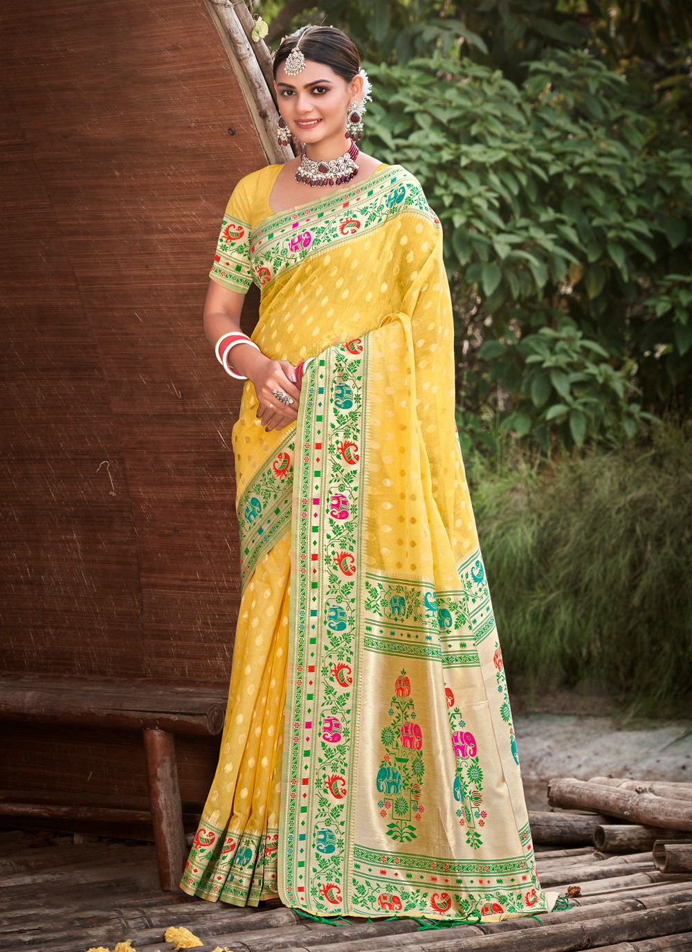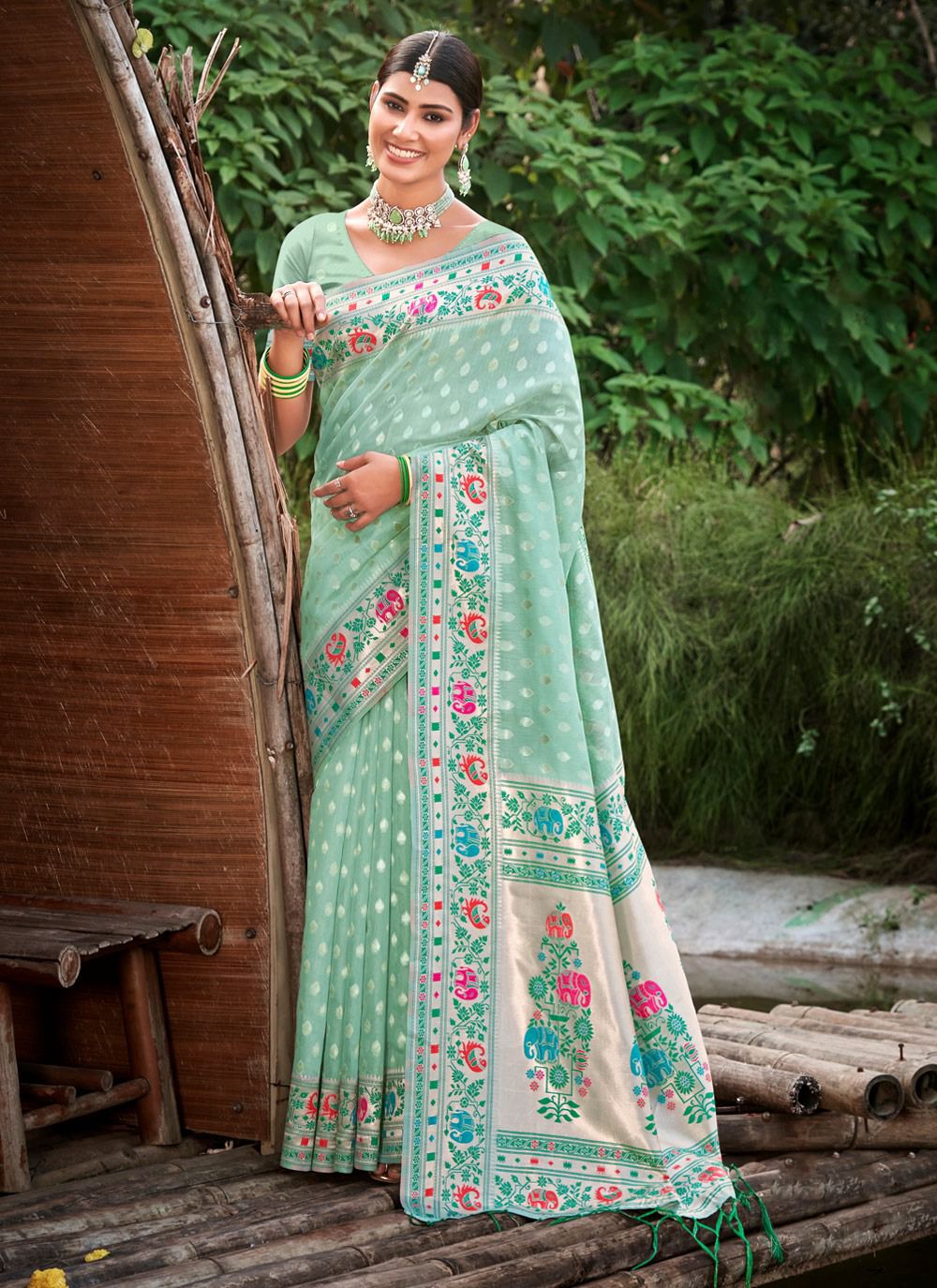 Bollywood Beautiful Paithani Silk Sari baranasi with soft organza saree