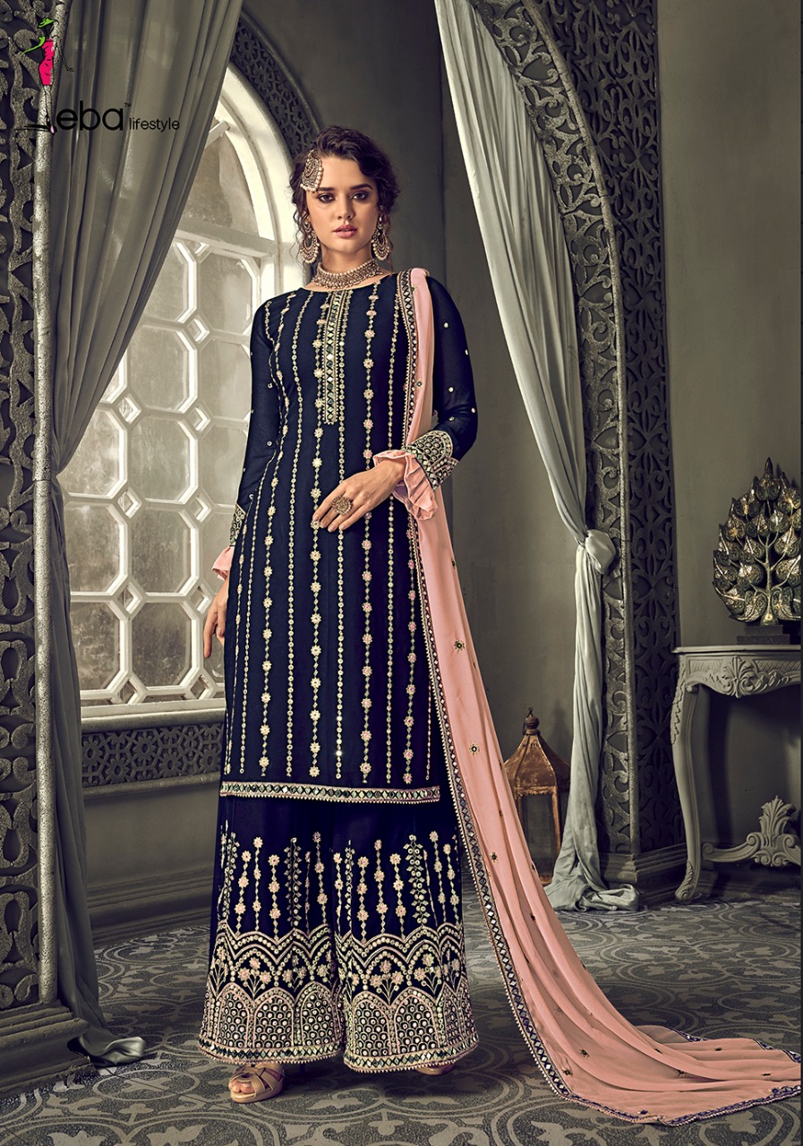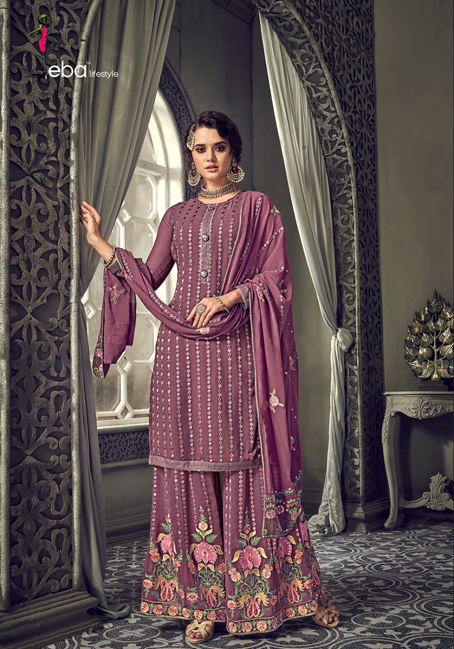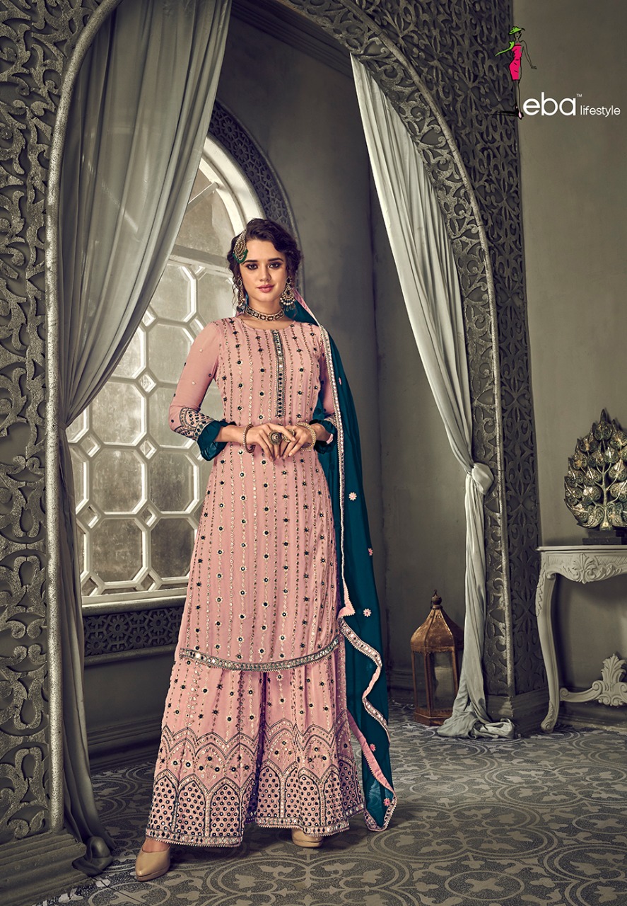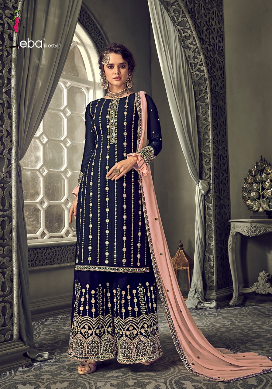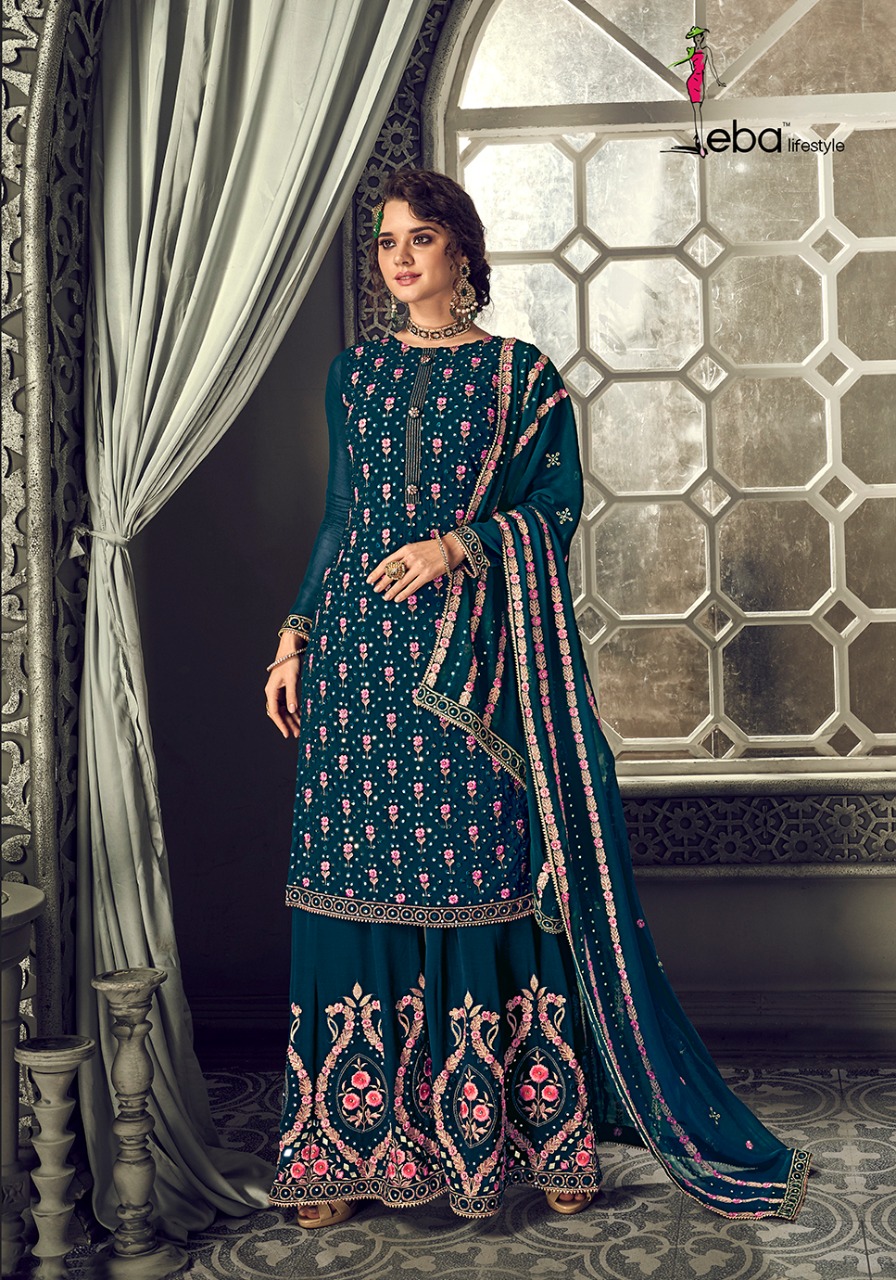 Eba Lifestyle Present Hurma Vol 30 Fox Georgette Embroidery Designer Salwar Suit Catalog Collection. | Top - fox Georgette with embroidery work with diamond | Inner- dual Santoon | Duppta- fox Georgette with embroidery work | Plazo - fox Georgette with Santoon inner with heavy embroidery & diamond