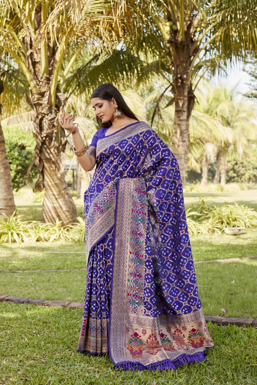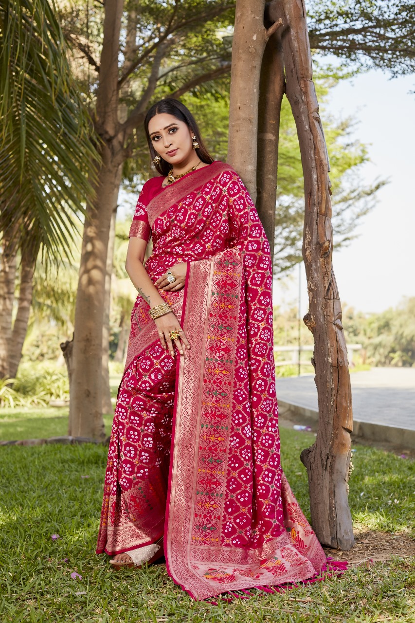 gharchola bandhej silk drapes that is super stylish and pretty saree
