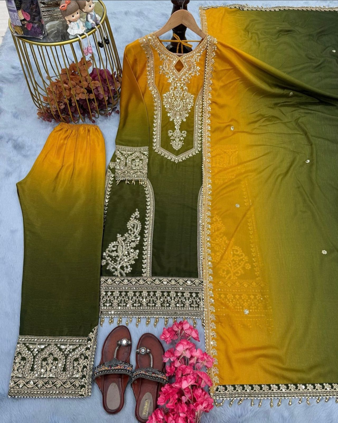 | NAME | HEAVY CHINNON with Embroidery Work Suit |