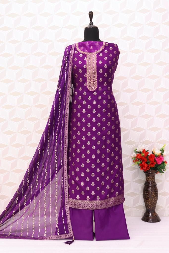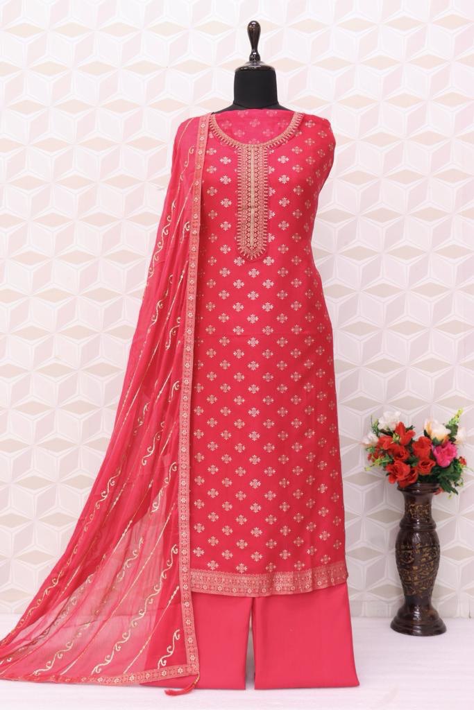 Heavy Fancy Chinon With Embroidery Codding Sequence Suit