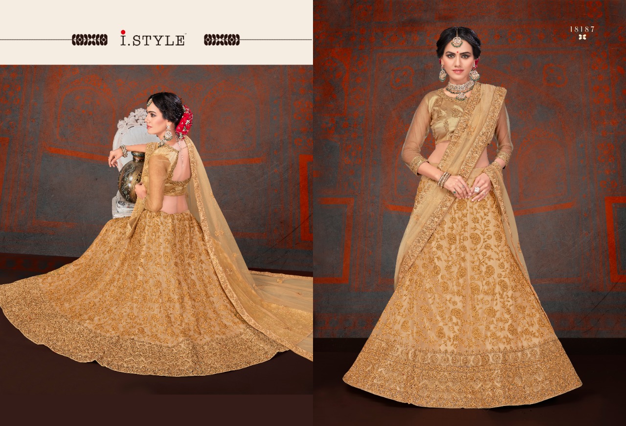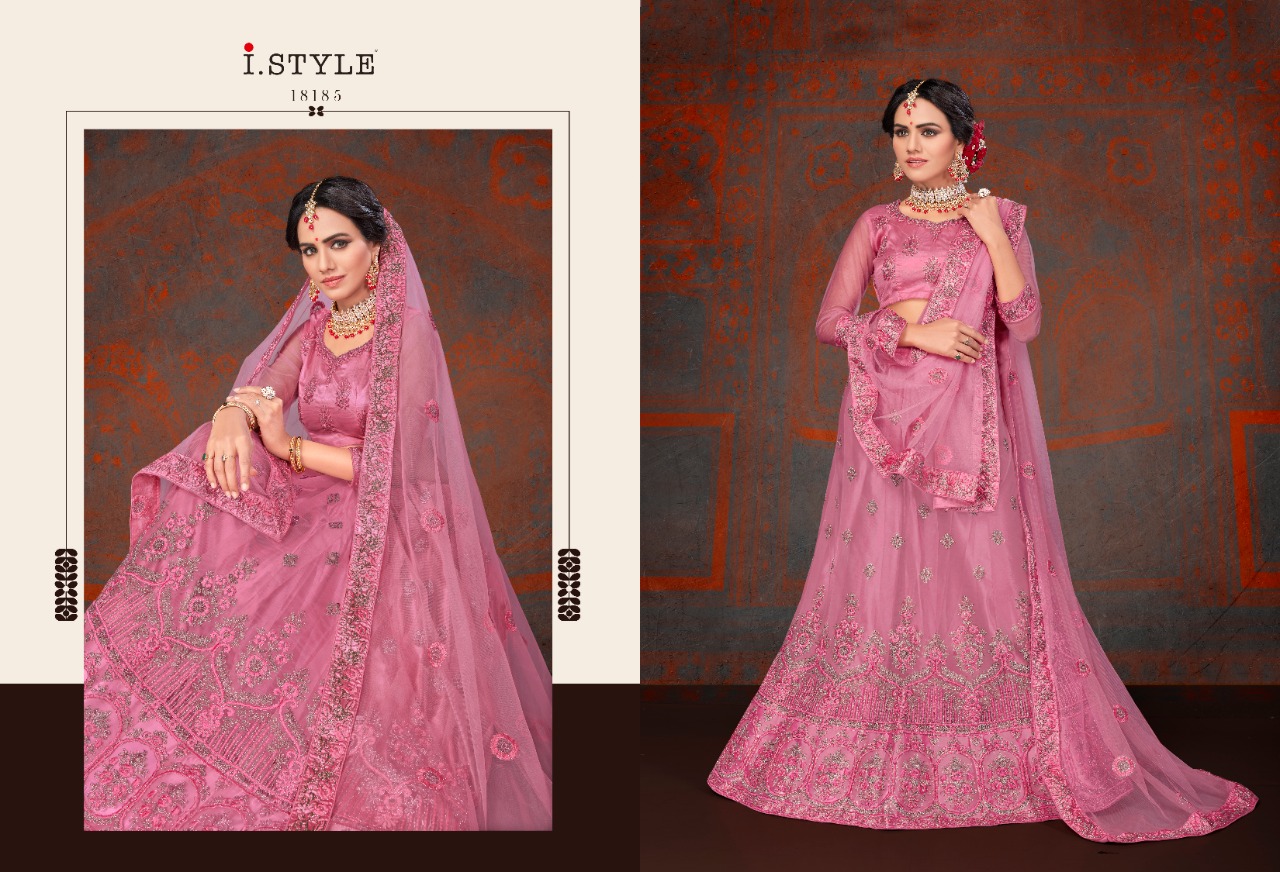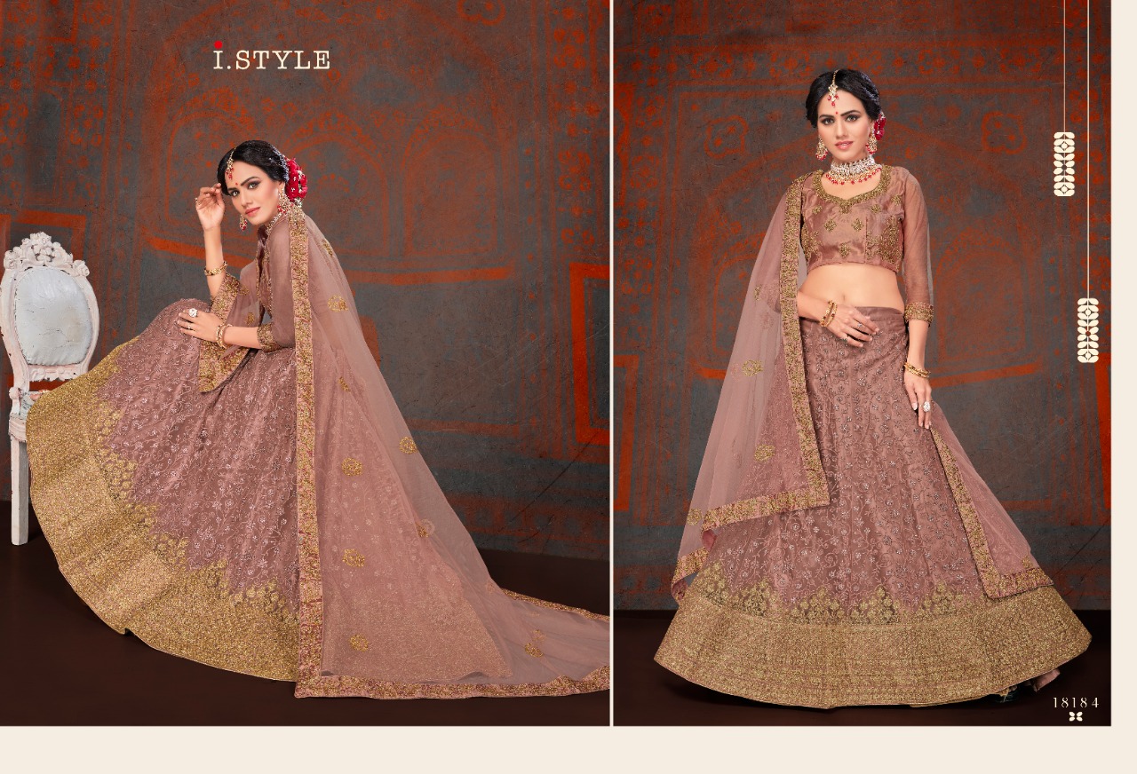 i style rangoon 2 designer net embroidered lehenga choli catalog at wholesale rate
