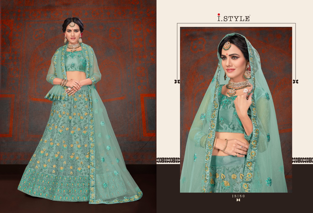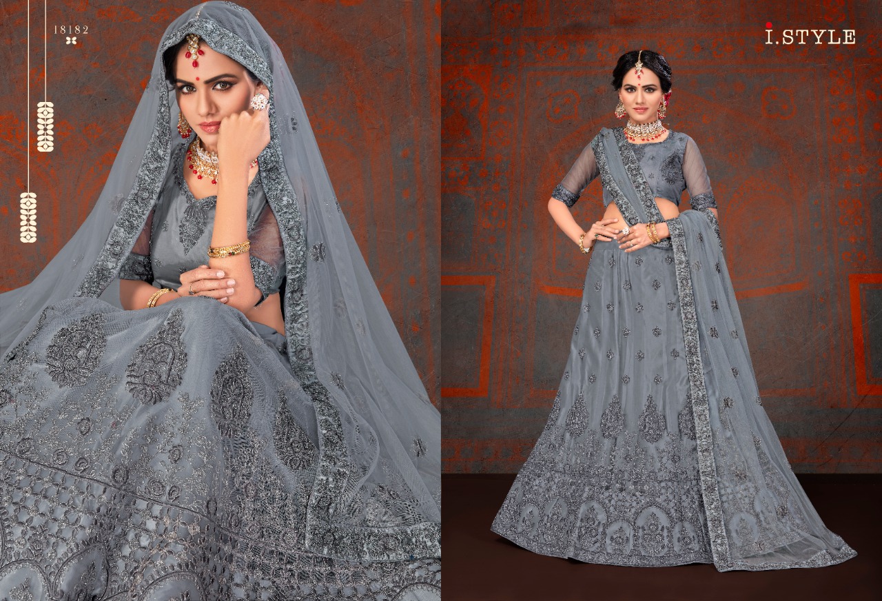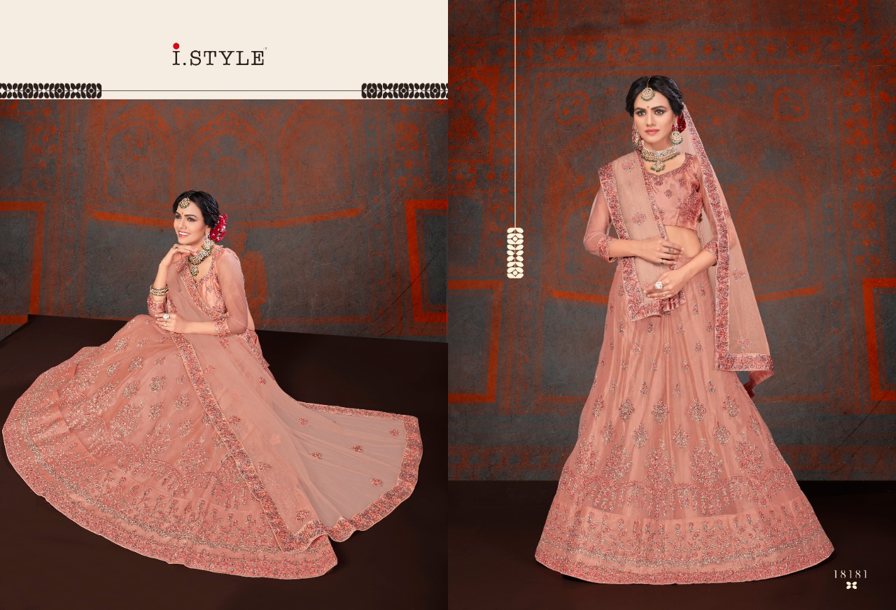 i style rangoon 2 designer net embroidered lehenga choli catalog at wholesale rate