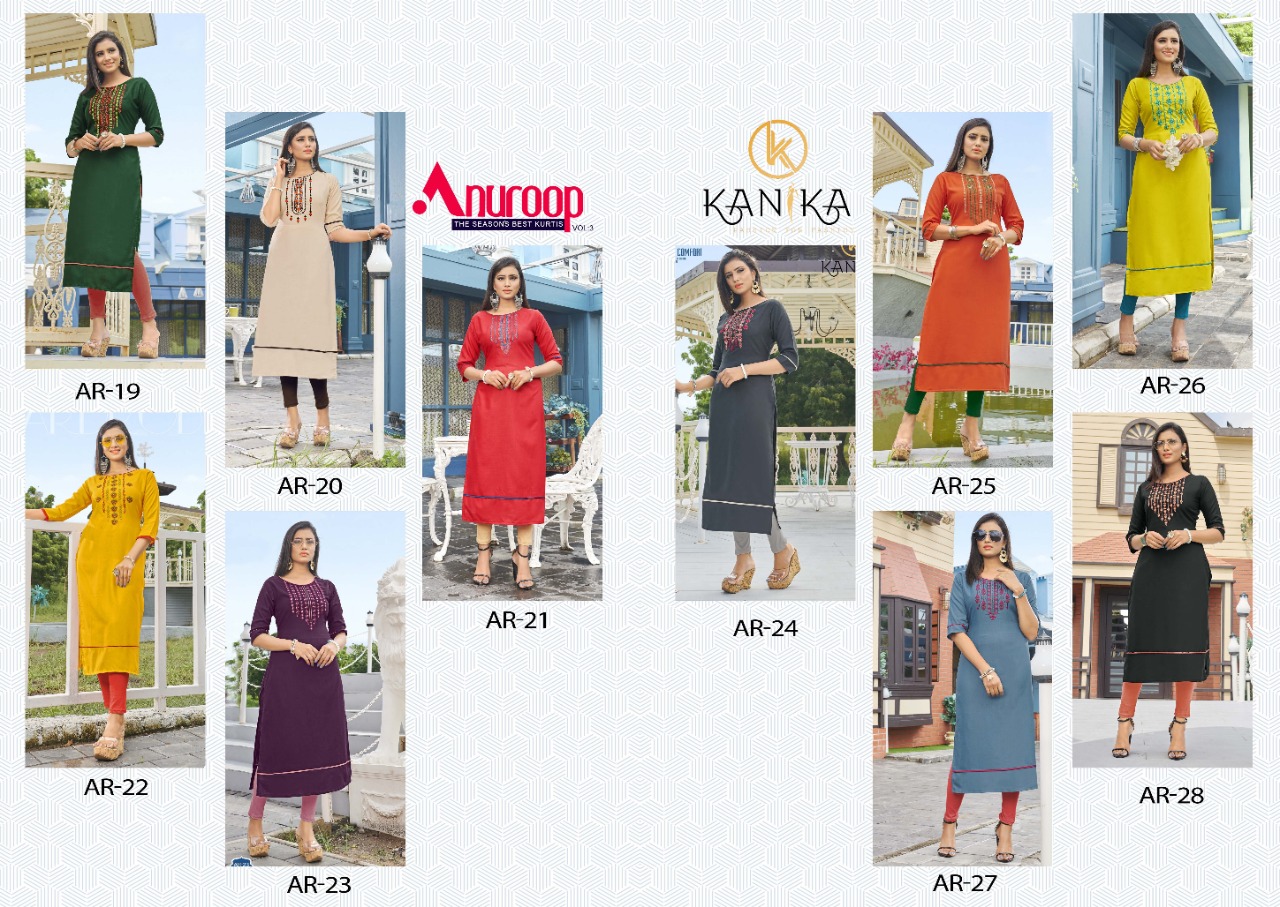 | NAME | Kanika Anuroop Vol -3 Stylish Ruby Silk with Embroidery Work Stylish Kurti Wear Catalog at Wholesale rate |