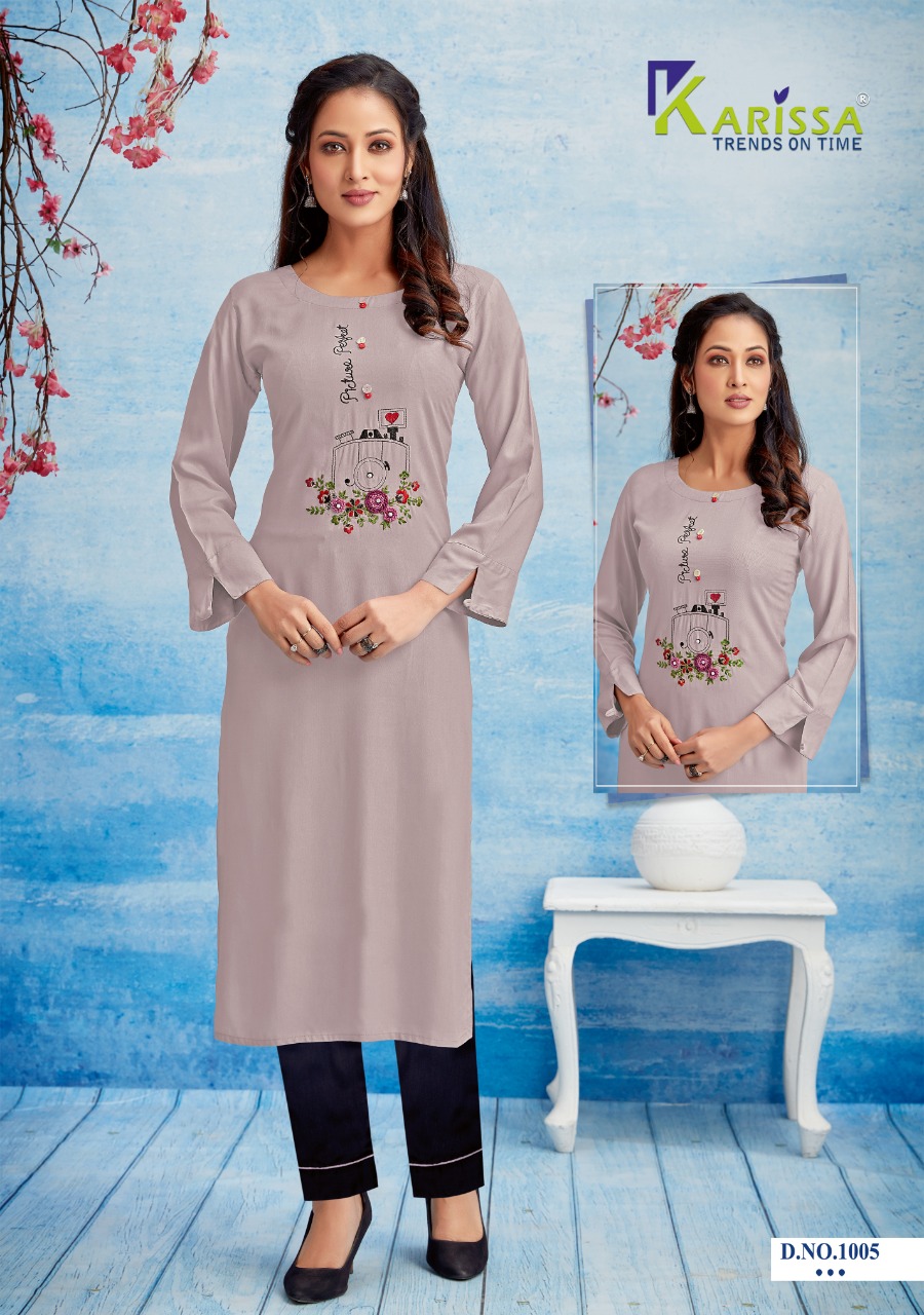 karissa rosemary stylish heavy rayon manual work kurti catalog at wholesale rate