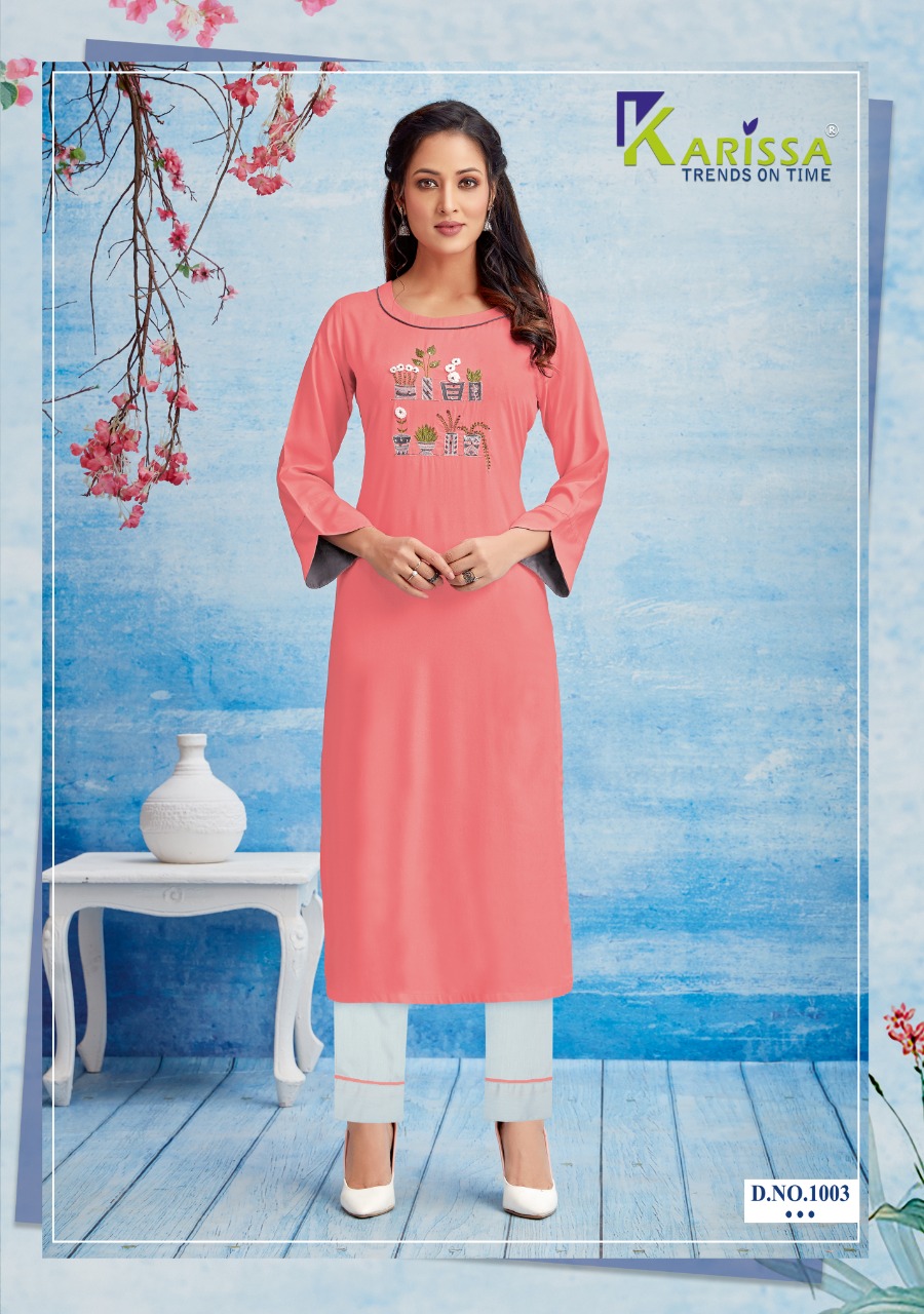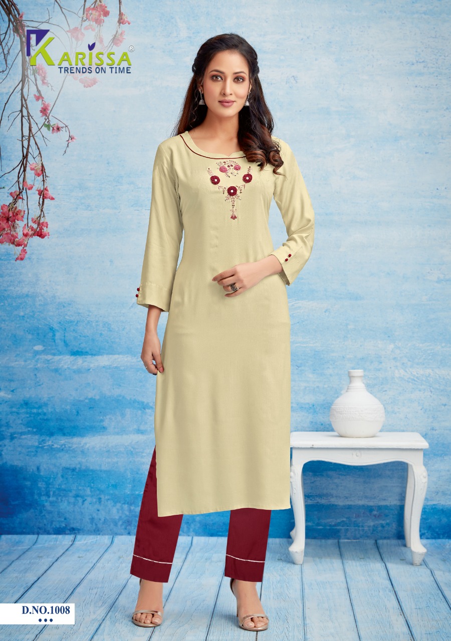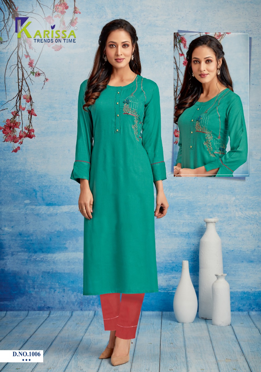 | NAME | Karissa Rosemary Stylish Heavy Rayon Manual Work Kurti Catalog at Wholesale rate |