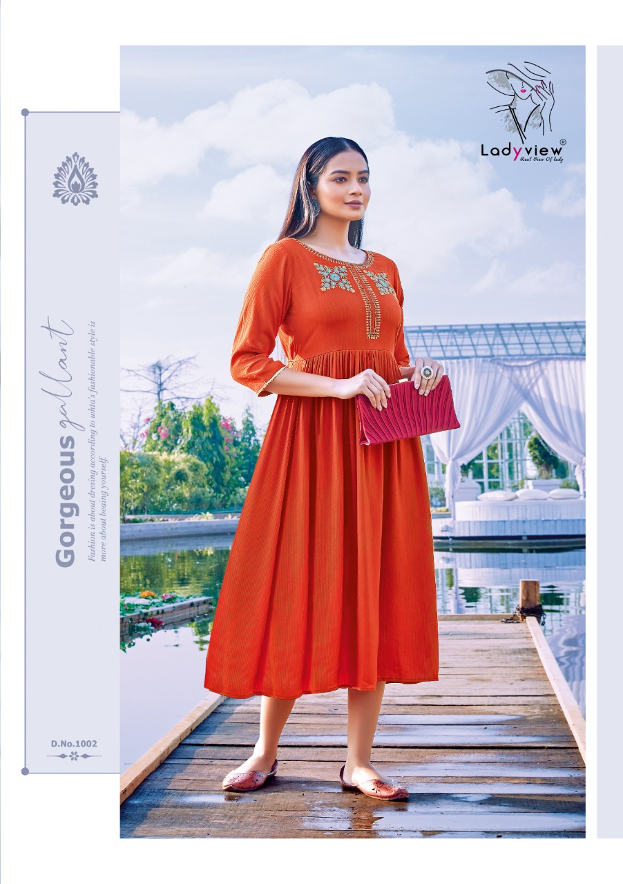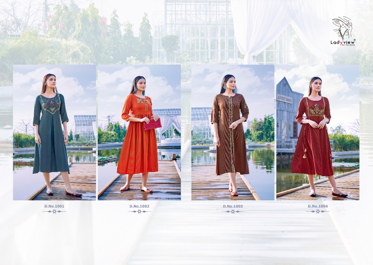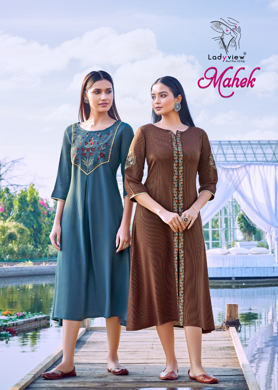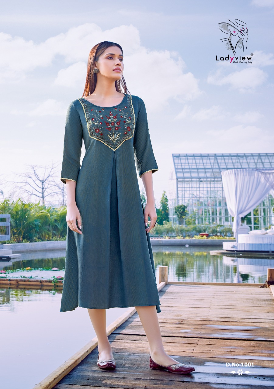 | NAME | Ladyview Mahek Heavy Embroidered Weaving Stripe Rayon Festive Wear Kurti At Wholesale Rate |