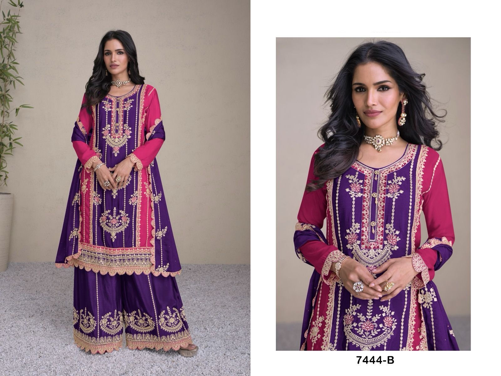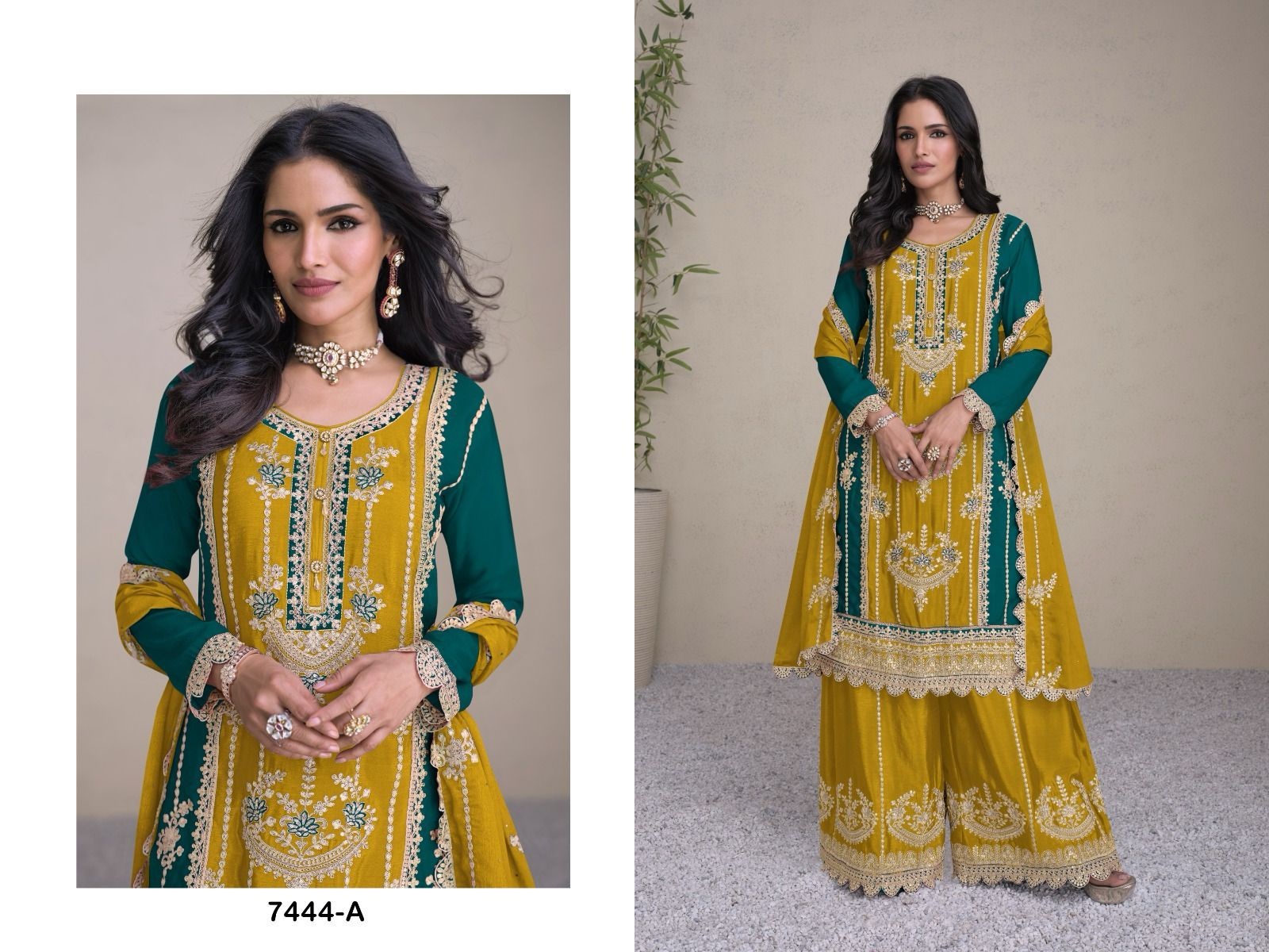 latest heavy real chinnon with embroidery work kurti with heavy chinon pant and dupatta