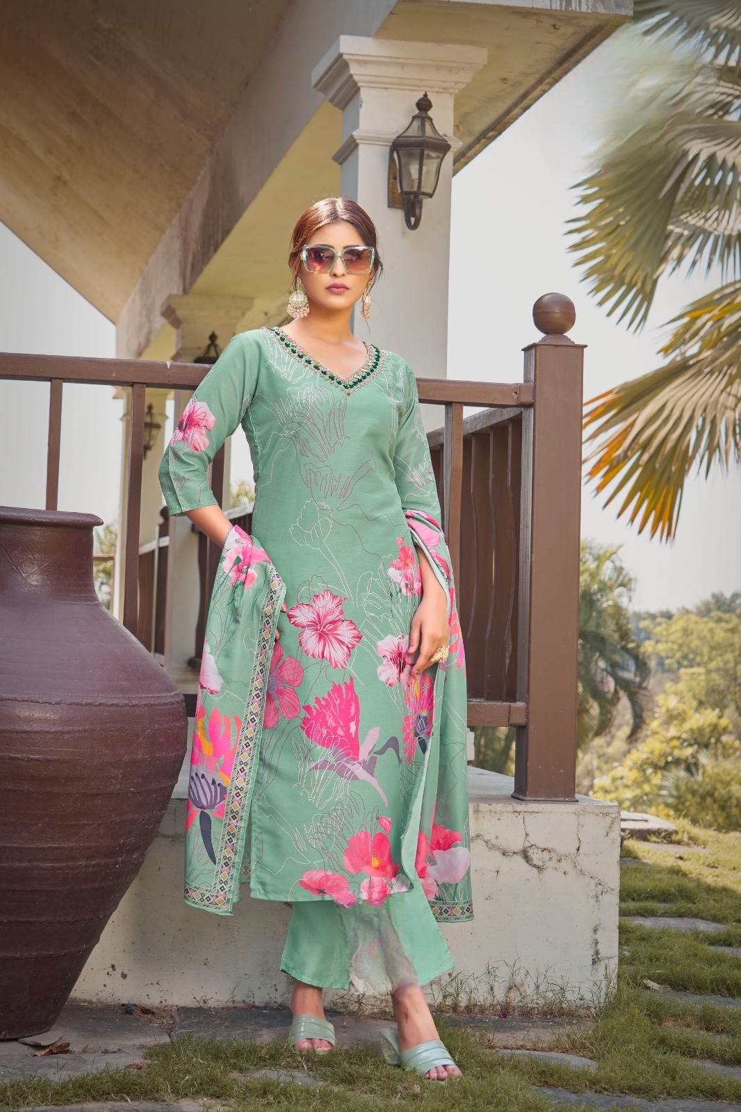 â–ªTop:- Muslin Printed Top With Neck Work.