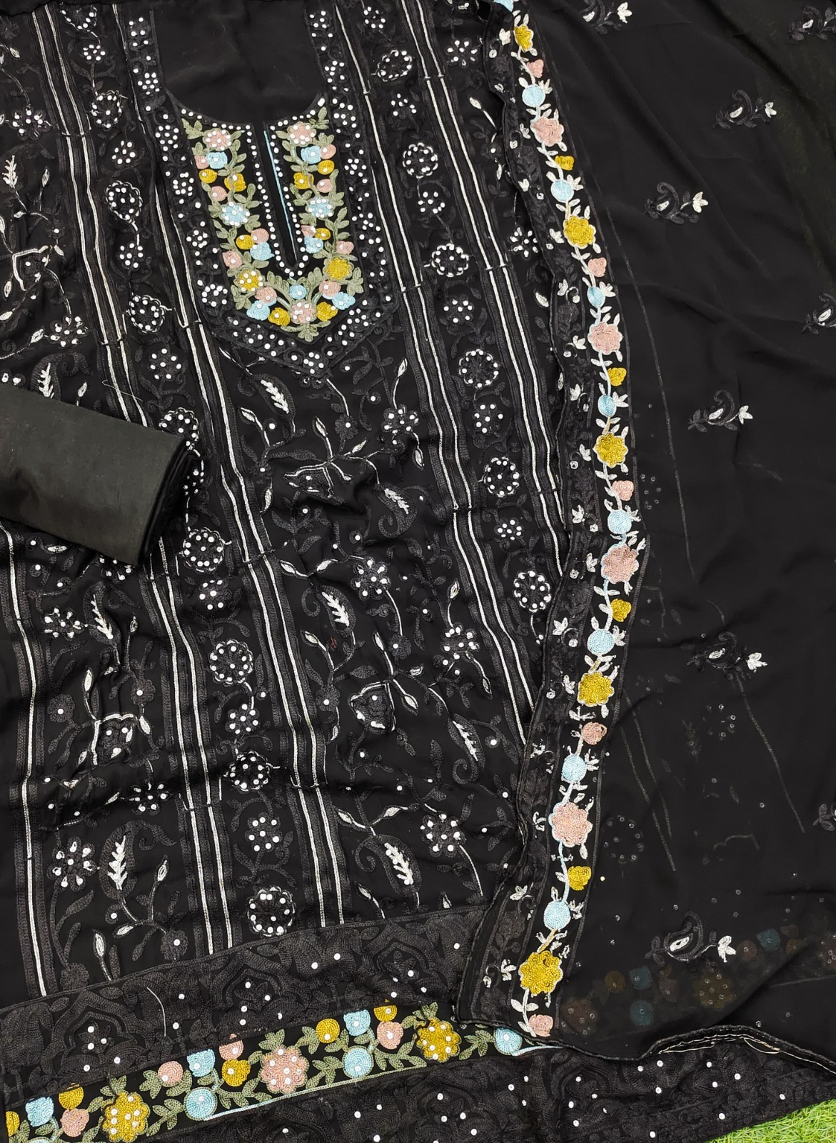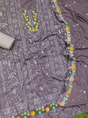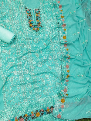new dress material for women foux jorjet with lakhnavi wark with santon silk bottom and dupatta suit for online sale