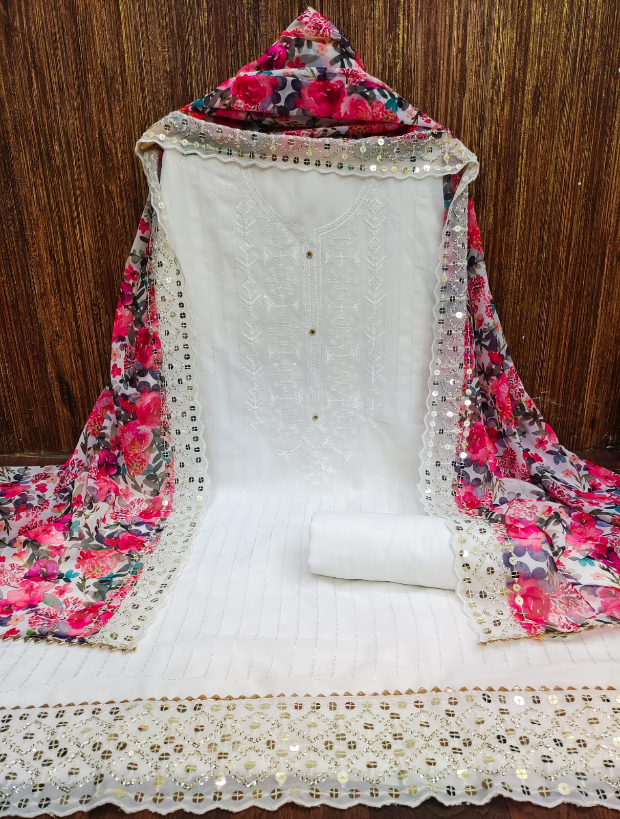 | NAME | New Dress Material Suit For top foux jorjet Embroidery With Handwork With Organza Embroidery Dupatta |