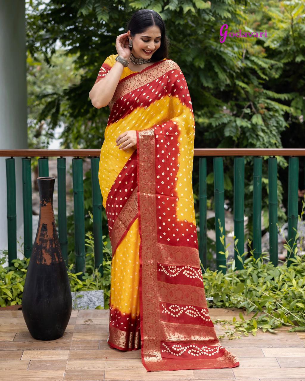 PAVITRA Dani Pure Bandhej silk saree With comfortable Bandhej silk drapes that is super stylish and pretty Sari