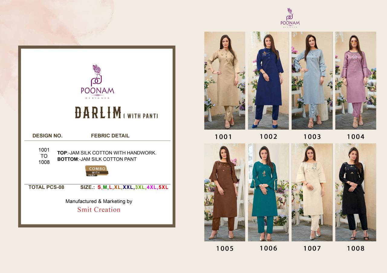 | NAME | Poonam Designer Darlim Designer Jam Silk Cotton Handwork Kurti Catalog at Wholesale rate |