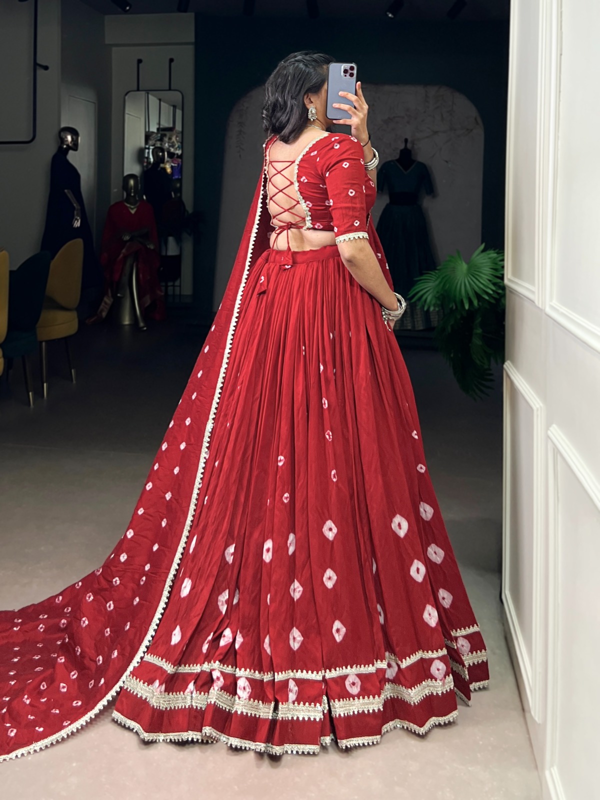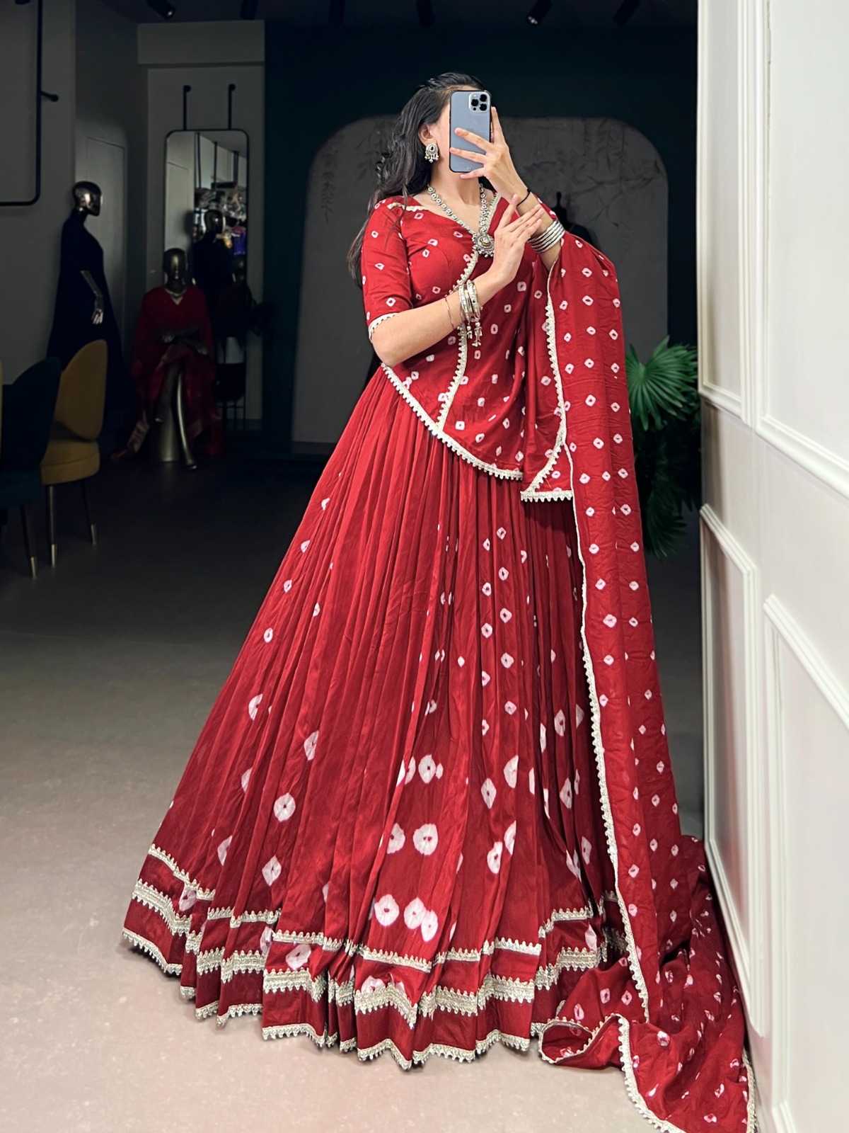Pure Chanderi Bandhej Print With Lace Touch Up Lehenga Choli