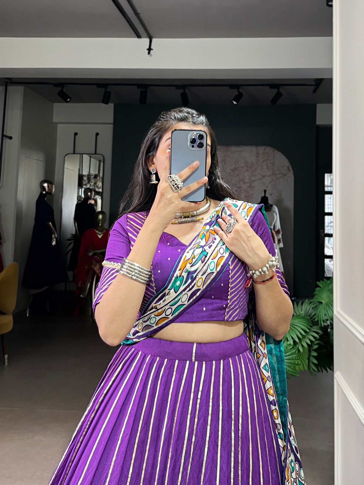 Pure Chanderi Zari Weaving Work With Embossed Design Lace Touch Up Lehenga