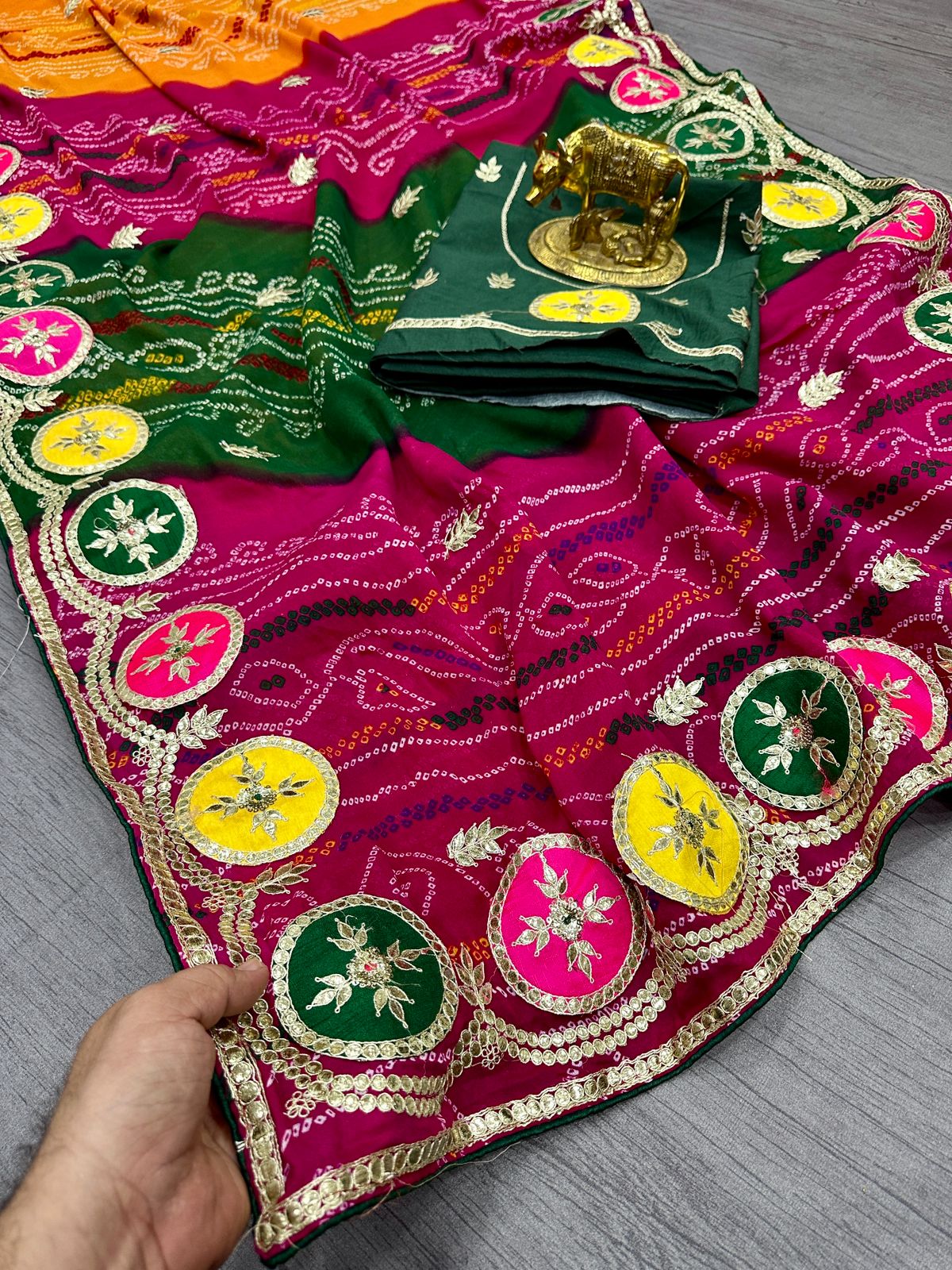 Pure Georgette with Jaipuri Bandhani Print Saree with Beautiful Gota