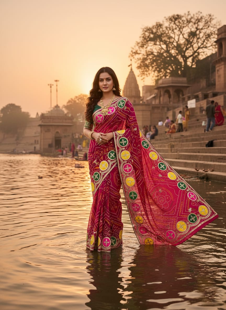 | NAME | Pure Georgette with Jaipuri Bandhani Print Saree with Beautiful Gota |