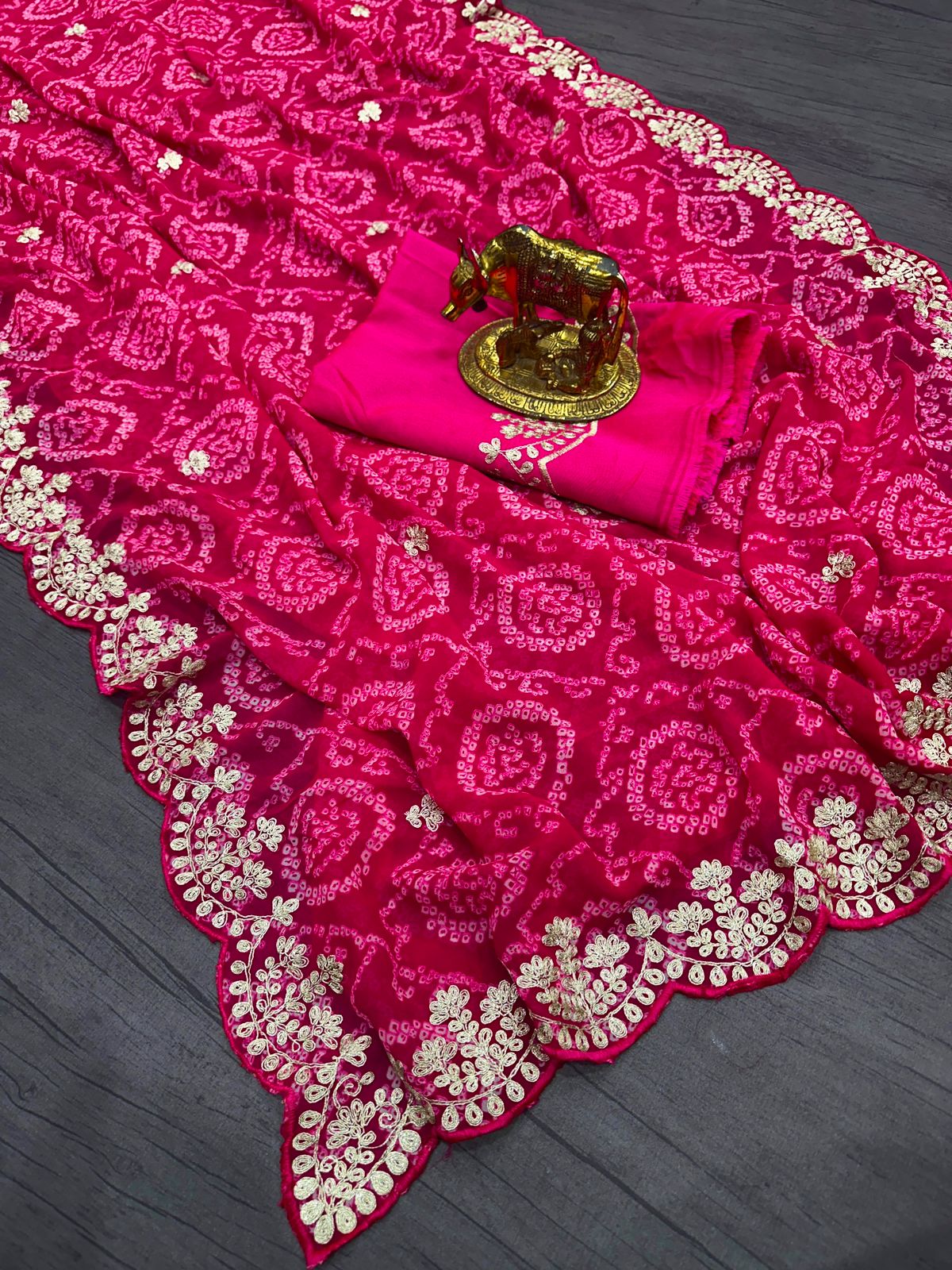 | NAME | Pure Georgette with Jodhpur Bandhani Print Saree with Beautiful Pita Work |
