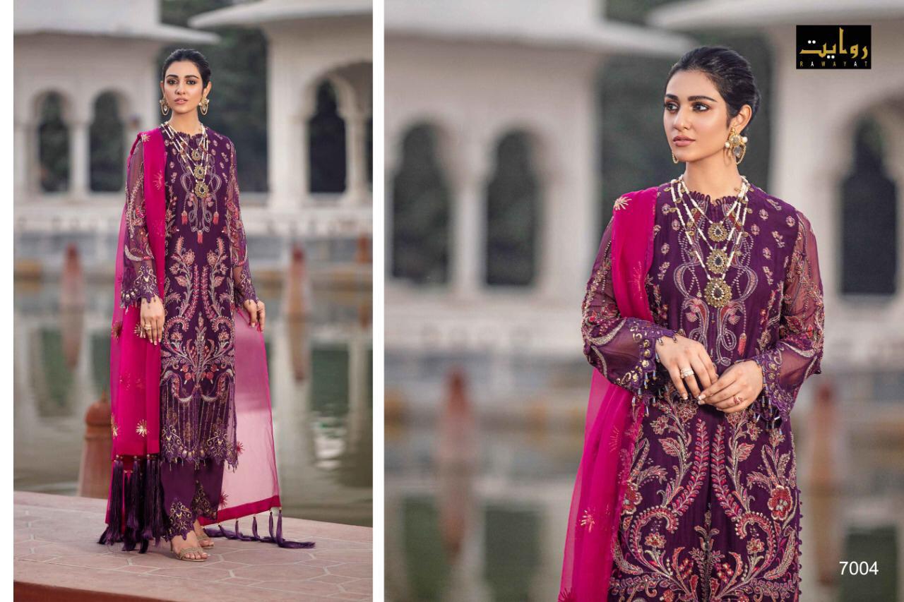 | NAME | Rawayat DamaskxRouche Vol 2 Faux Georgette Embroidery Work Salwar Suit Catalog at Wholesale rate |
