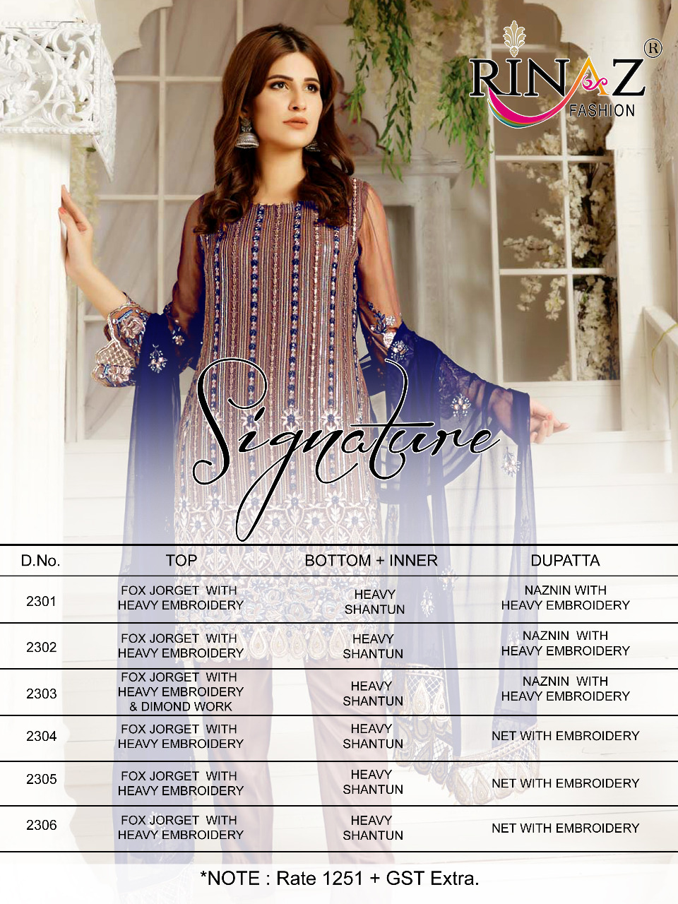 | NAME | Rinaz Signature Designer Salwar Suit Catalog Collection |