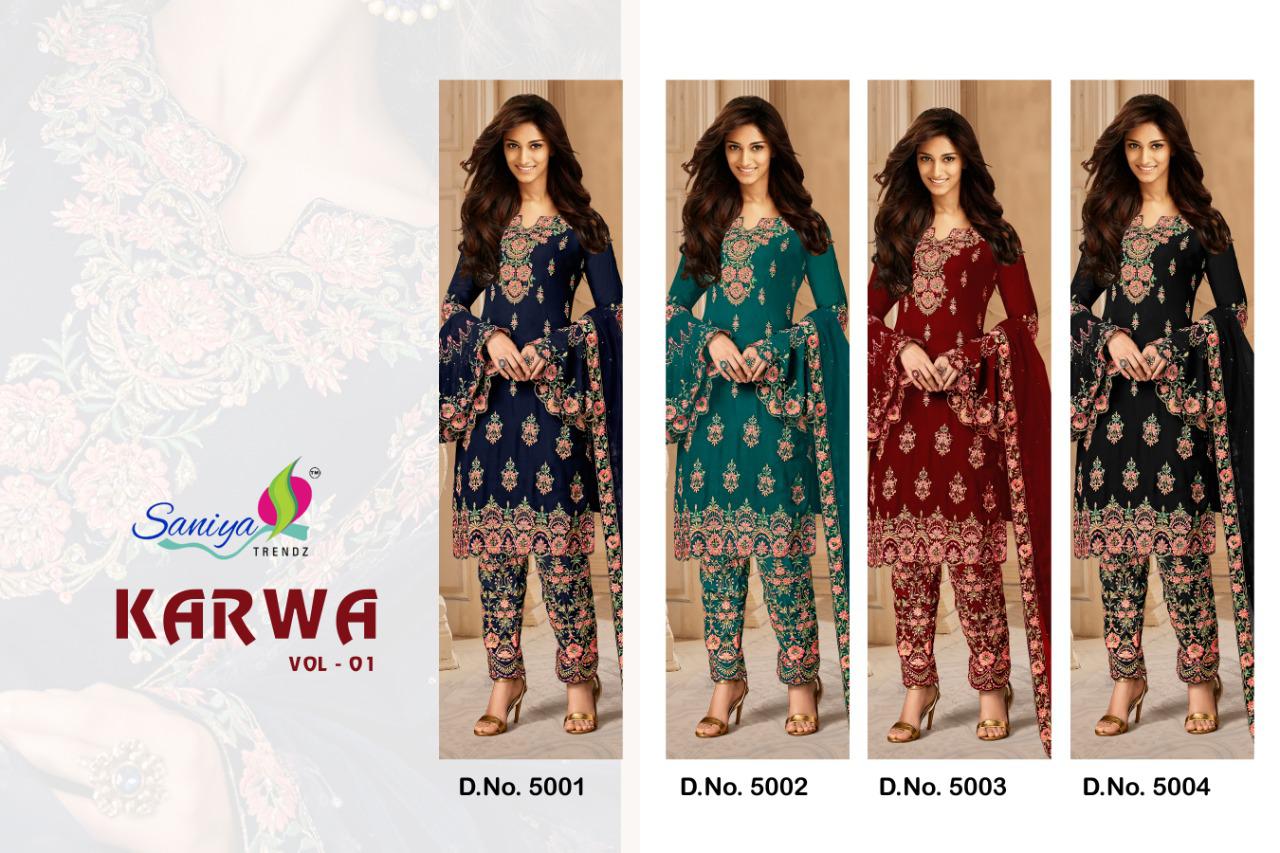 Saniya Trendz KARWA -1 Designer Embroidered Work Salwar Suit Catalog at Wholesale rate