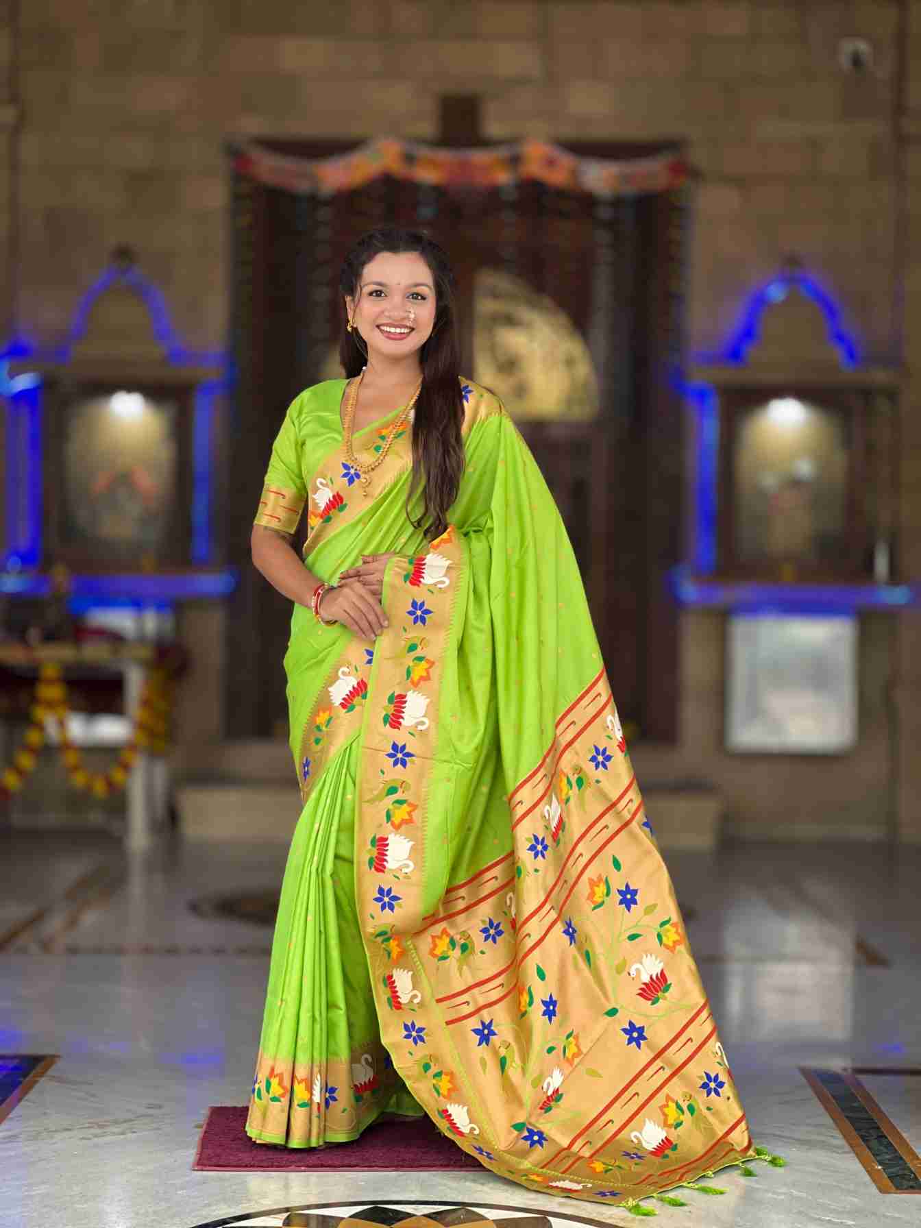 soft pethani silk saree with zari weawing motifs design