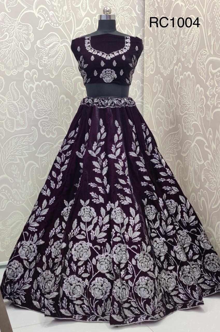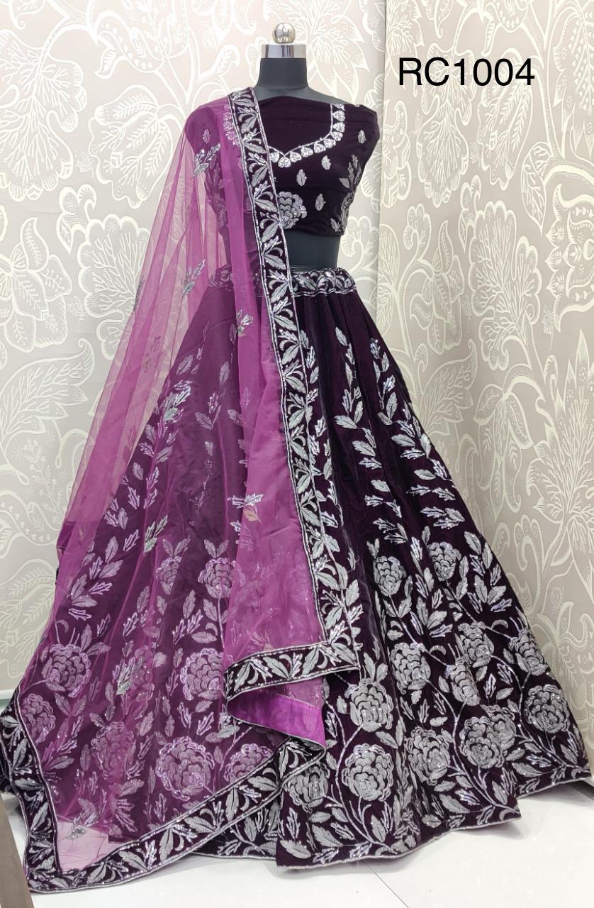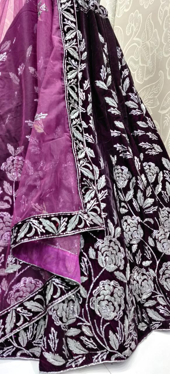 Thankar Designer Embroidery Purple Velvet Lehenga Catalog at Wholesale rate