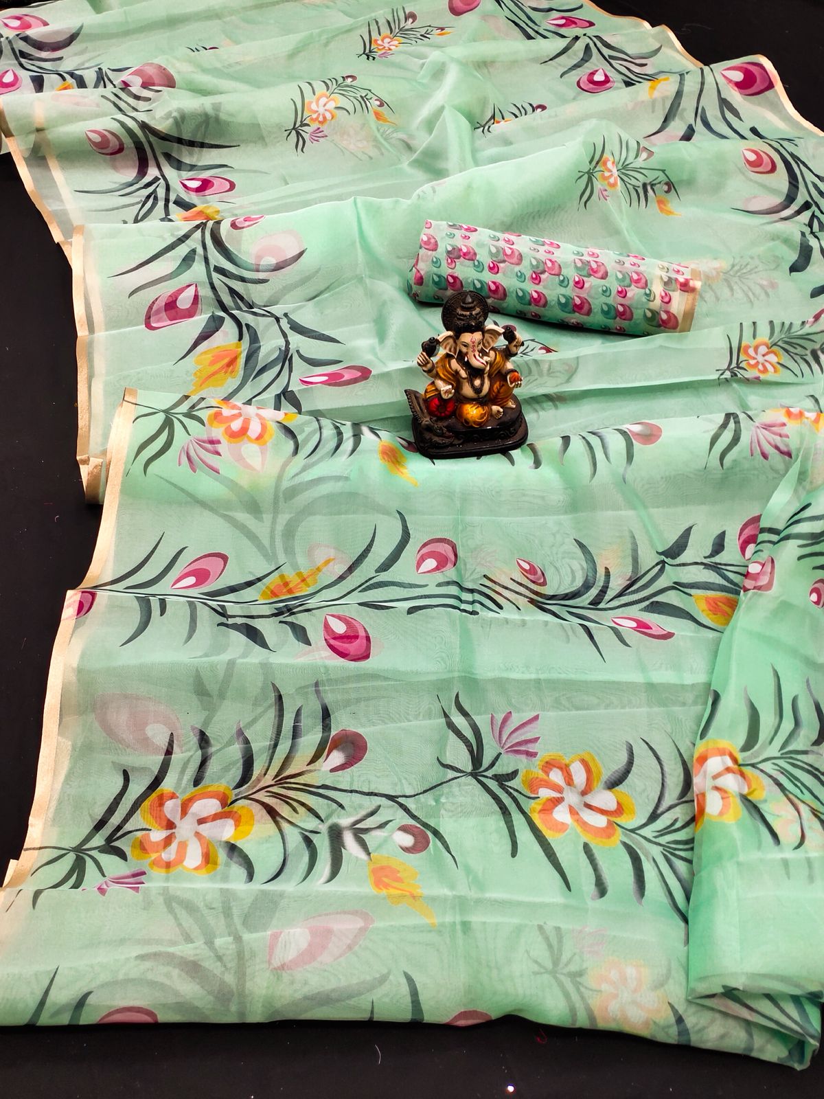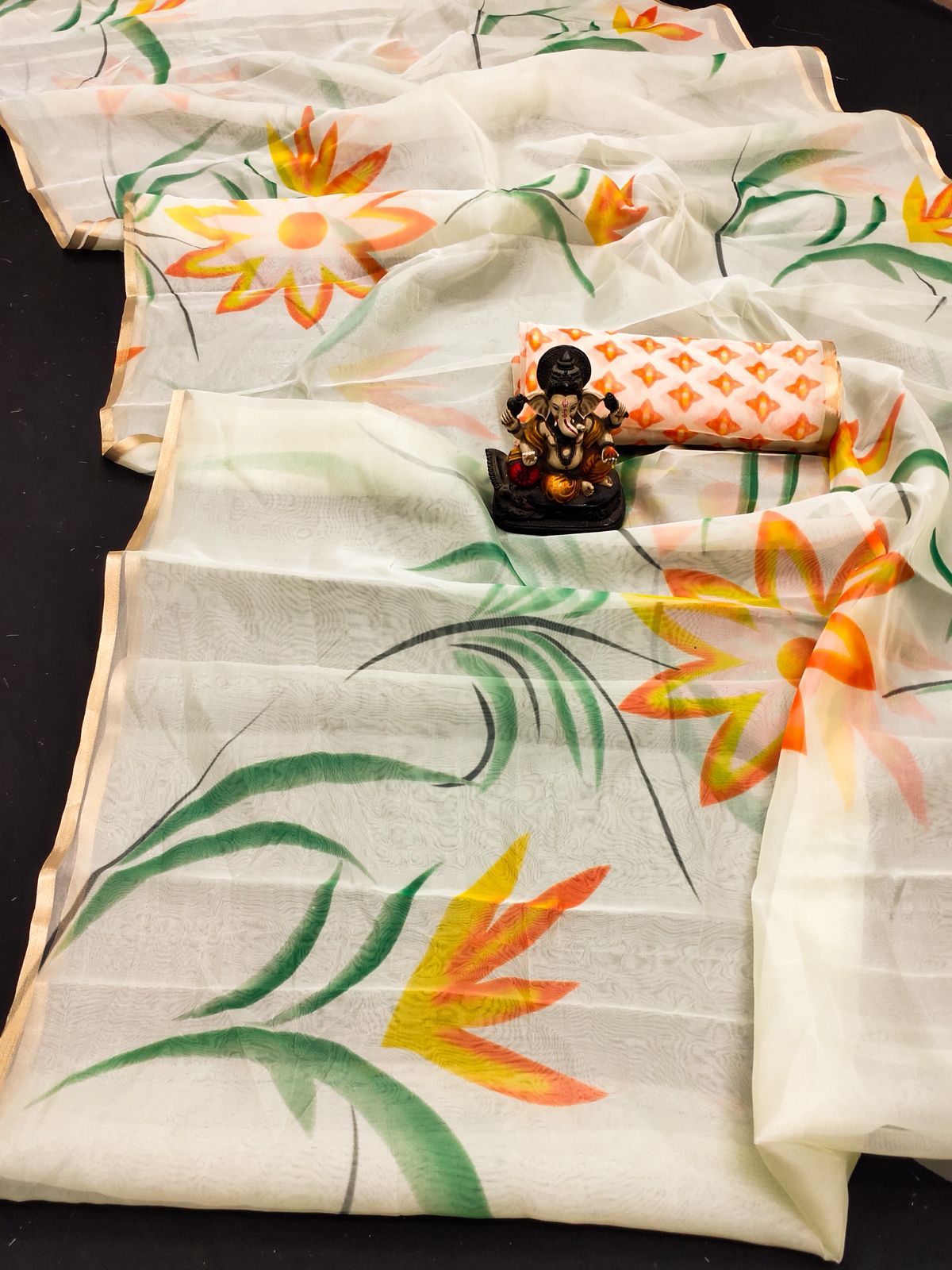 | NAME | Traditional And Classic With Best Quality Organza Digital Print Soft Shiny Art Silk Sarees |