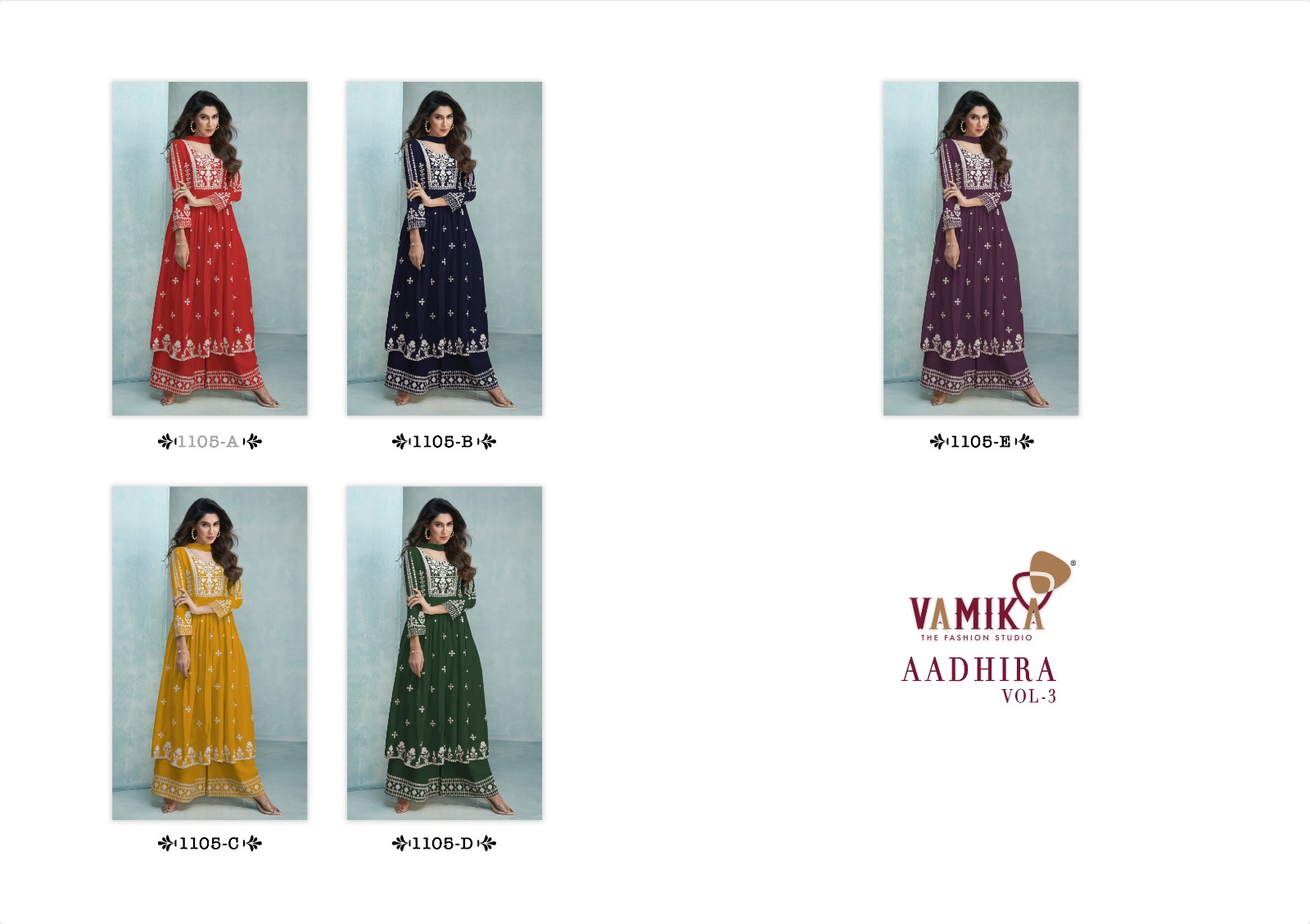 | NAME | VAMIKA AADHIRA Vol-3 PURE REYON VISCOS FABRIC WITH HEAVY LAKHNAWI EMBROIDERY KURTIS |