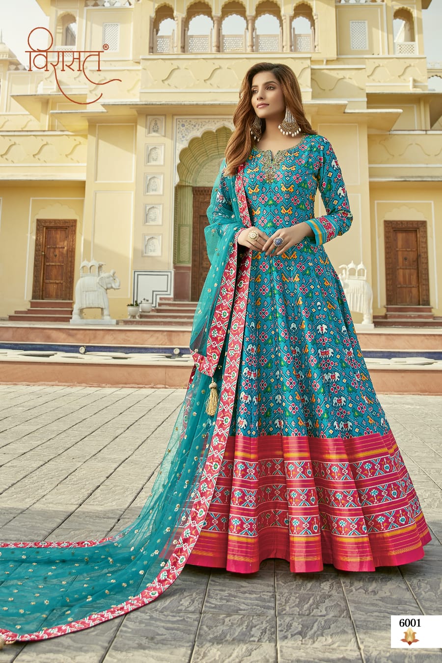 DESCRIPTION :- DESIGNER PATOLA PRINT WITH DESIGNER NACK HENDWORK AND DESIGNER LATKAN WTH CANCAN NET FABRIC DETAILS:- CHERRY SILK DUPPATA :- SOFT NET AND EMBRODARY WORK AND DRESSING LOOK'S LENGTH :- 58" FLARE :- 4.60 MITTER SIZE :- L,XL,XXL WEIGHT :- 2 KG