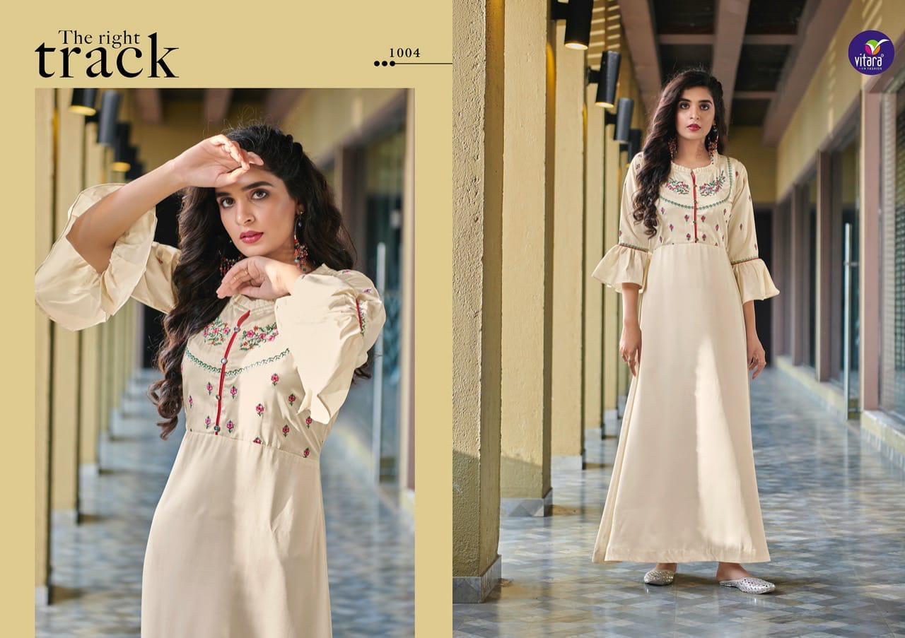 vitara siyona 2 designer heavy malai satin embroidered anarkali kurti catalog at wholesale rate