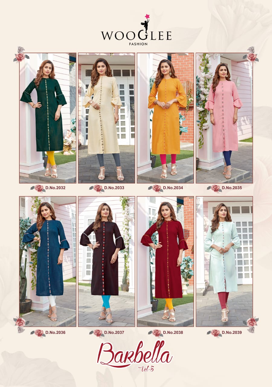| NAME | Wooglee Barbella Vol 5 Rayon Viscose Two Tone Casual Wear Kurti Catalog At Wholesale Rate |